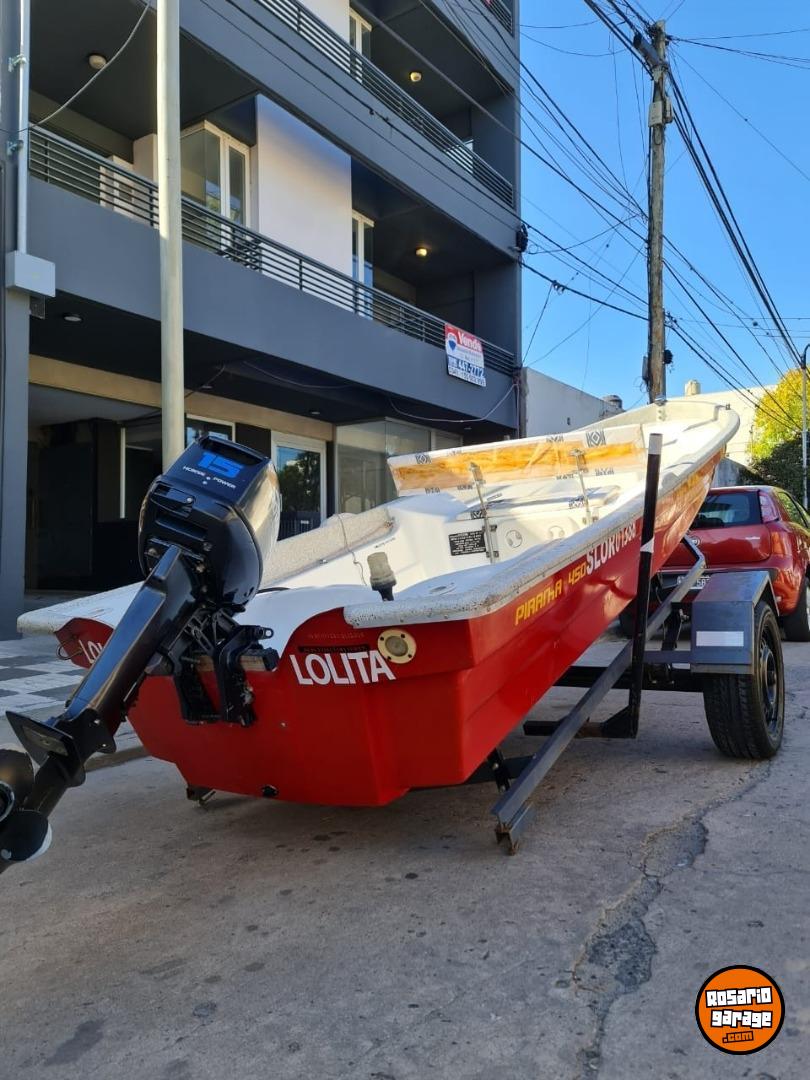 Vendo lancha piranha ( astillero delfín) 450 con motor pawer tec 15 hp ... todo modelo 2015 . Trailer rutero con luces y cubiertas nuevas . Eslora 458 , manga 151 , Puntal 057.