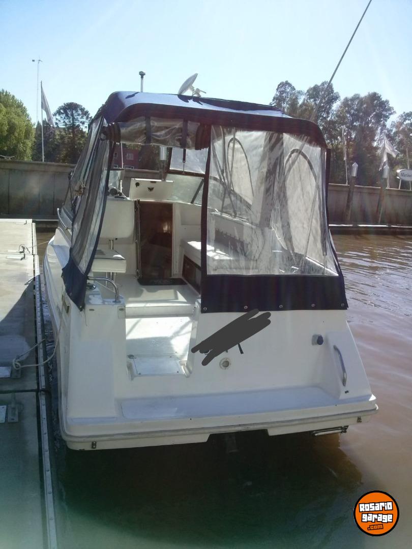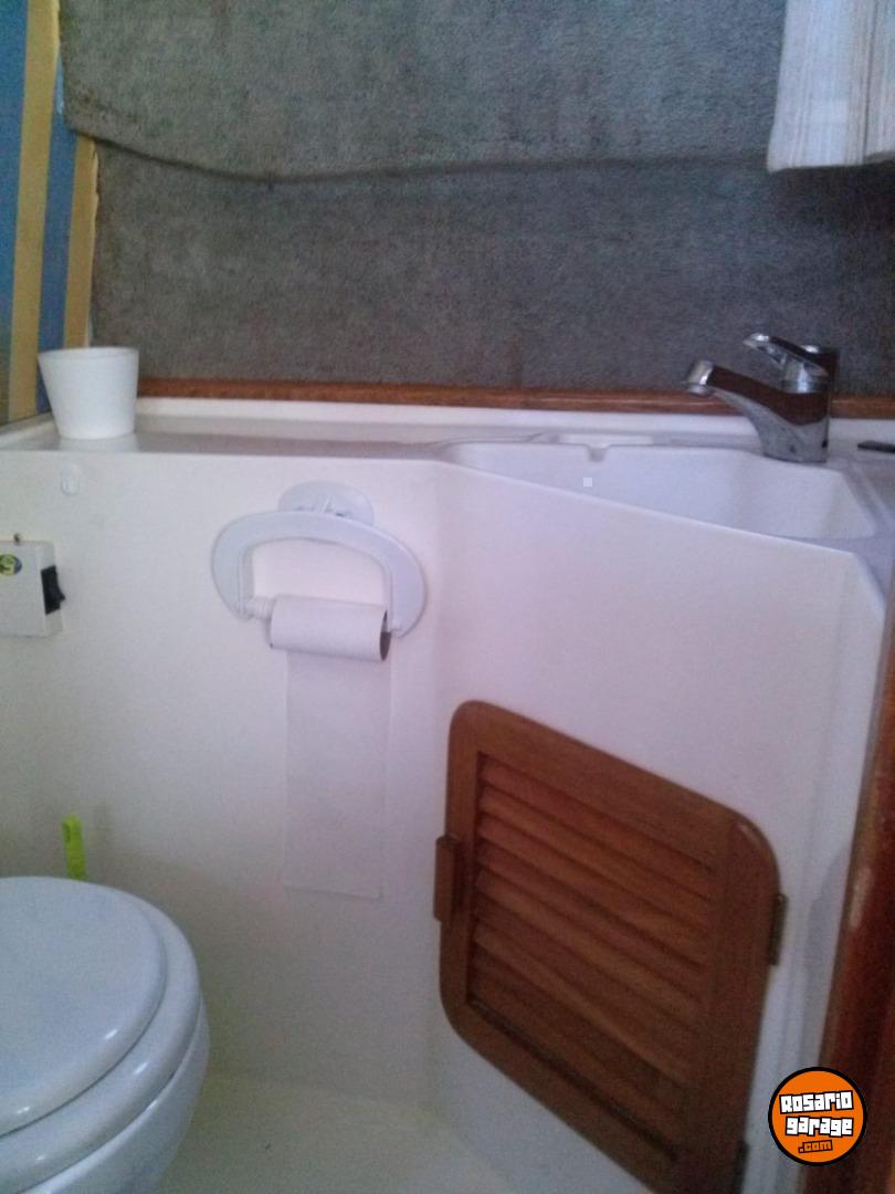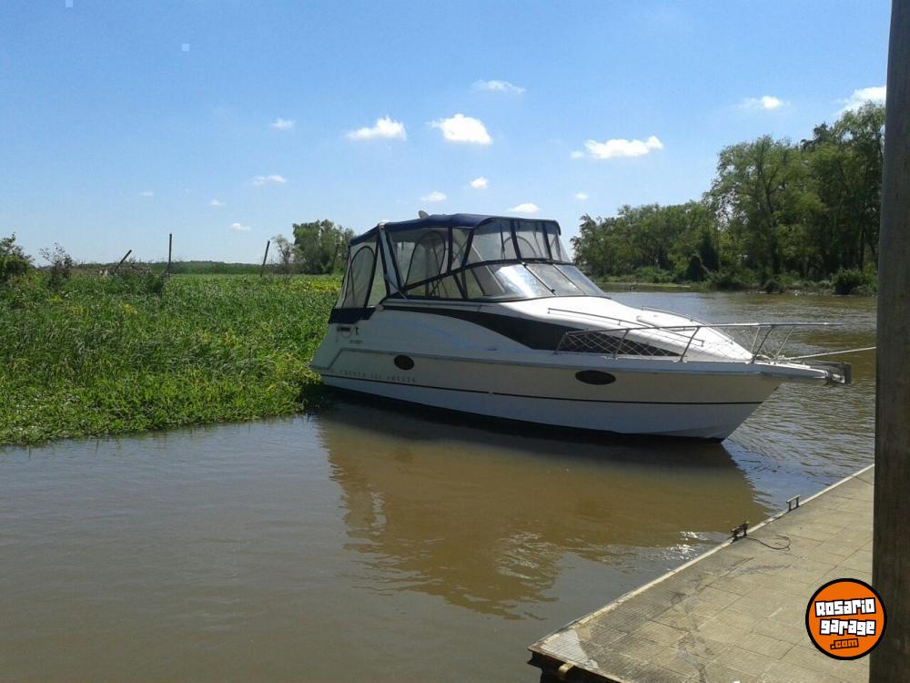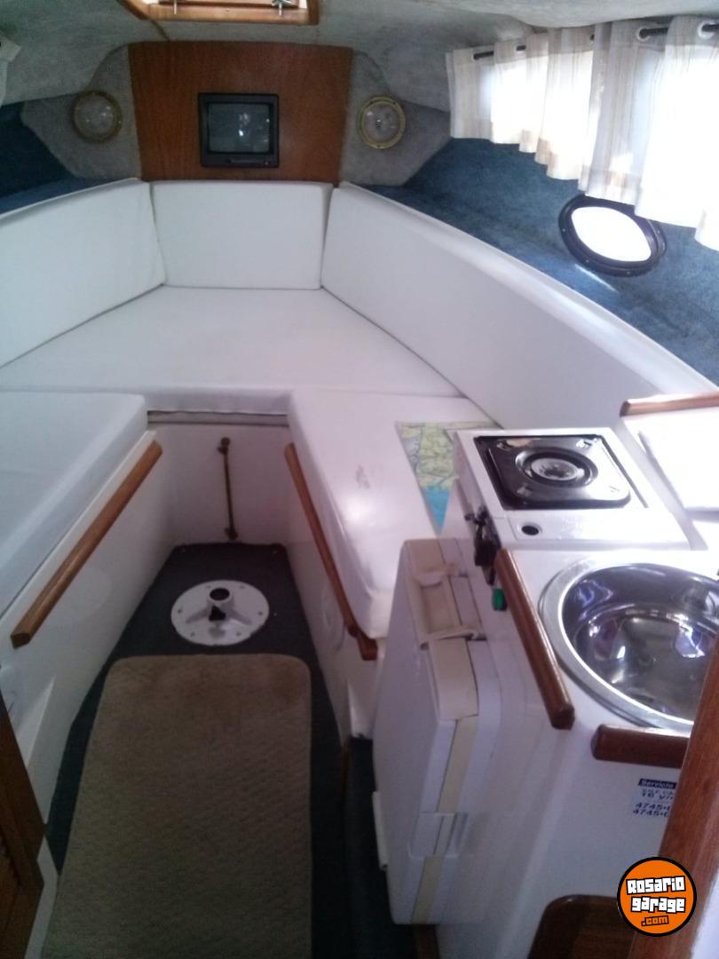 Año 1998. Linea moderna. Motor mercruiser 3.0lx impecable (bajo consumo) (comprobable), pata mercruiser, trim y hélice acero inoxidable todo NUEVO y probado (15 HS uso) con service hecho. El barco está completo. Camarote con matrimonial, conejera plaza y media, baño, heladera, cocina, tv sat, cerramiento completo repasado. Altura interna 180 cm entras parado. Ecosonda gps Garmin striker 5., malacate eléctrico, 2 bat 110/12, etc...