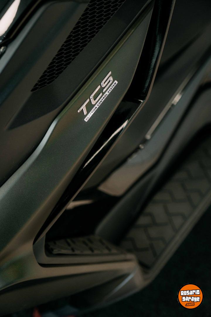Frenos ABS en ambos ejes, disco delantero de 260 mm con pinza de 3 pistones, disco trasero de 220 mm con pinza de 2 pistones.