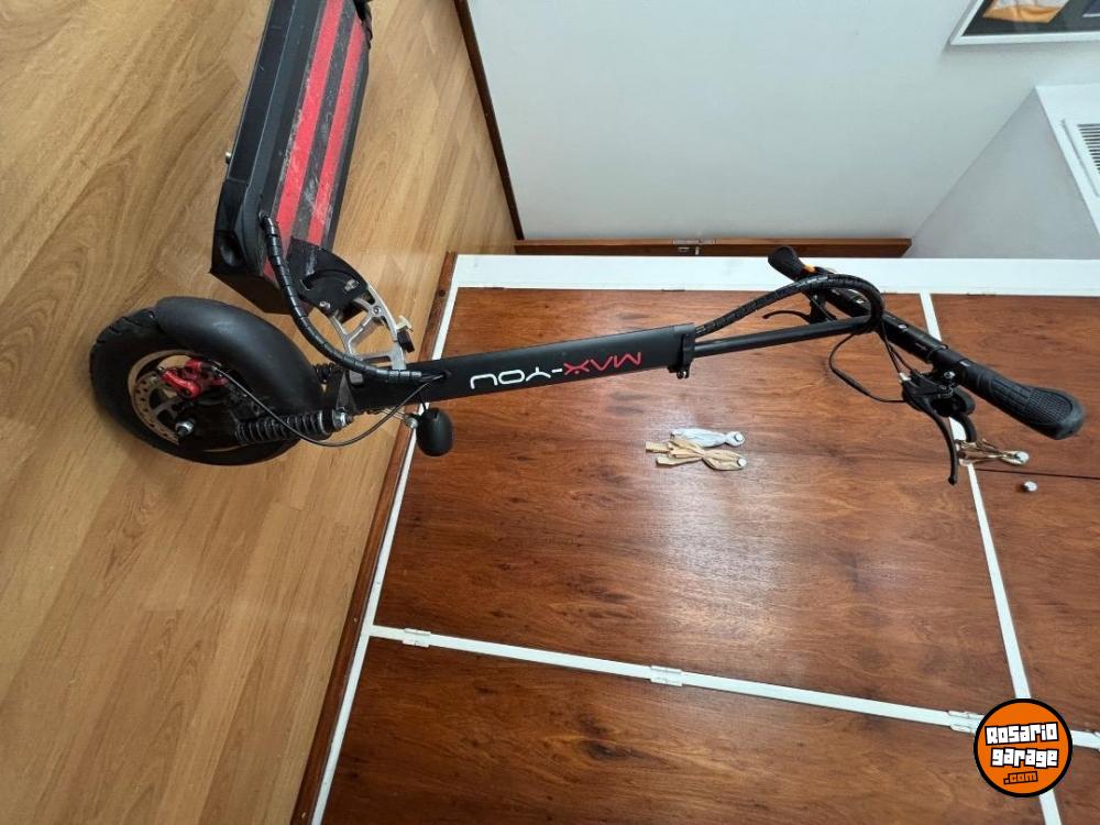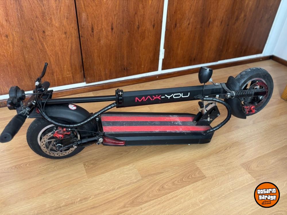 Monopatin Max You S3. Velocidad máxima 45 km, con tres modos de manejo. Autonimia 45/50km. Amortiguadores delanteros y traseros. Luces led. Año 2023. Estado excelente.