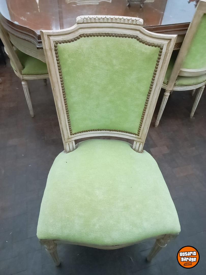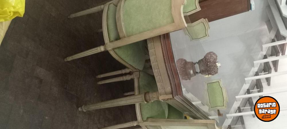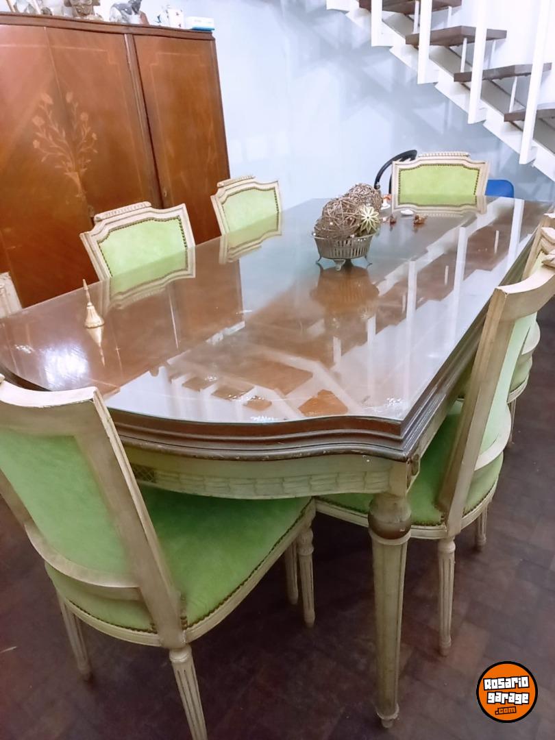 Extraordinario juego comedor Luis XV. Mesa extensible con vidrio