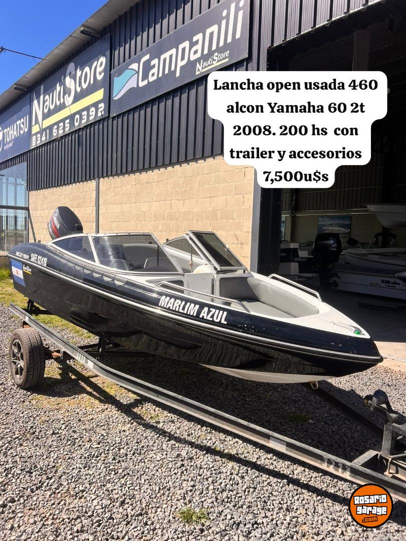 Lancha open usada 460 alcon Yamaha 60 2t 2008. 200 hs con trailer y accesorios 7,500u$s