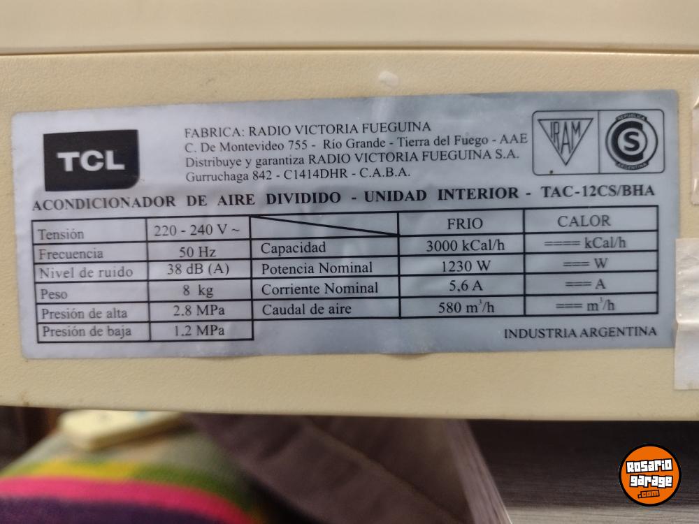 Aire acondicionado TCL 3000 frigorías, Usado en exelente estado, con control remoto. Contiene el gas almacenado de la unidad exterior, al momento de instalarlo, no hará falta agregar gas. Escucho ofertas razonables.