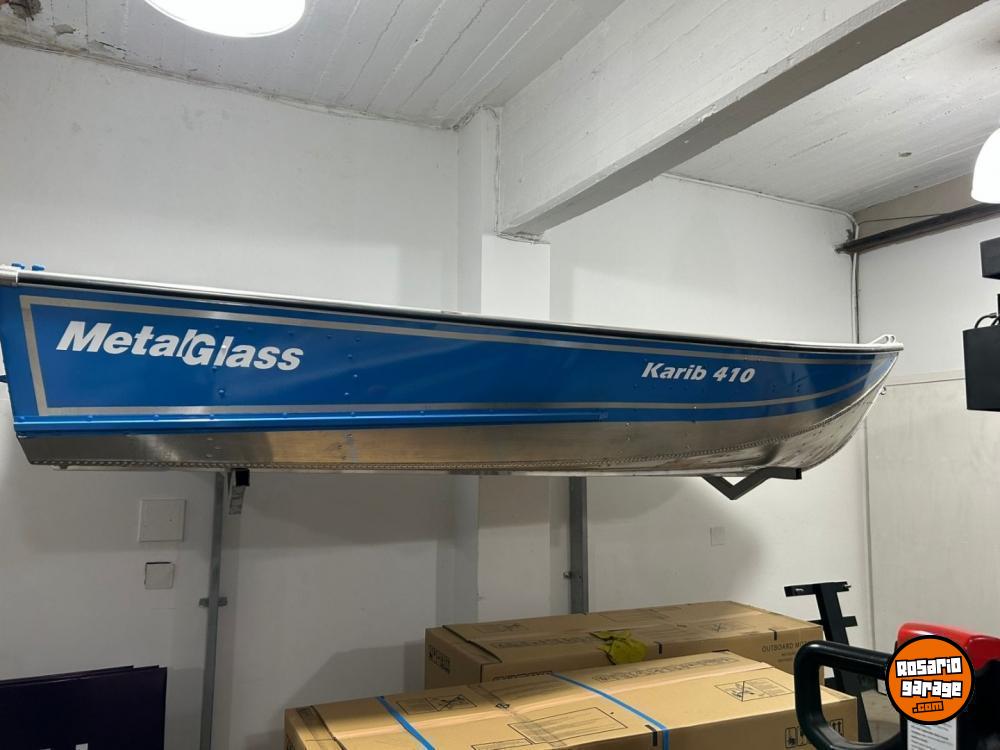 Bote aluminio metalglas modelo karib 410 nuevo estanco para carnada viva motorización hasta 18 hp tambucho de proa, listo para matricular lona cobertura opcional