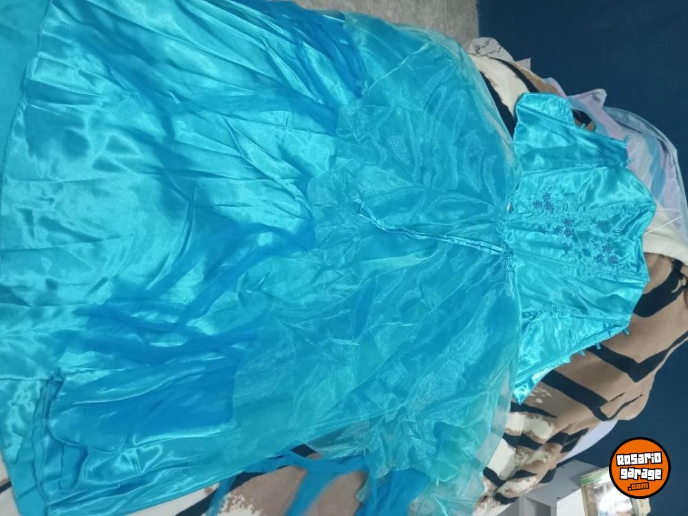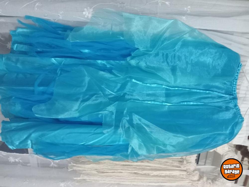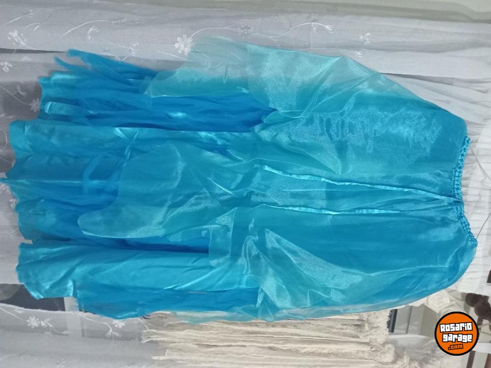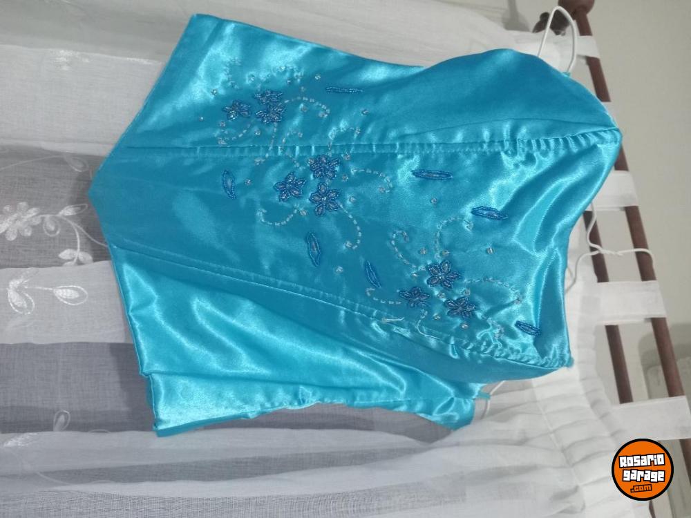 Vestido de raso color turquesa, corset pollera. Talle M. Bordado con canutillos. Un solo uso