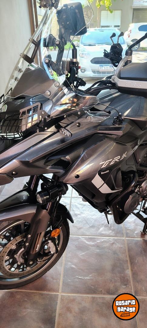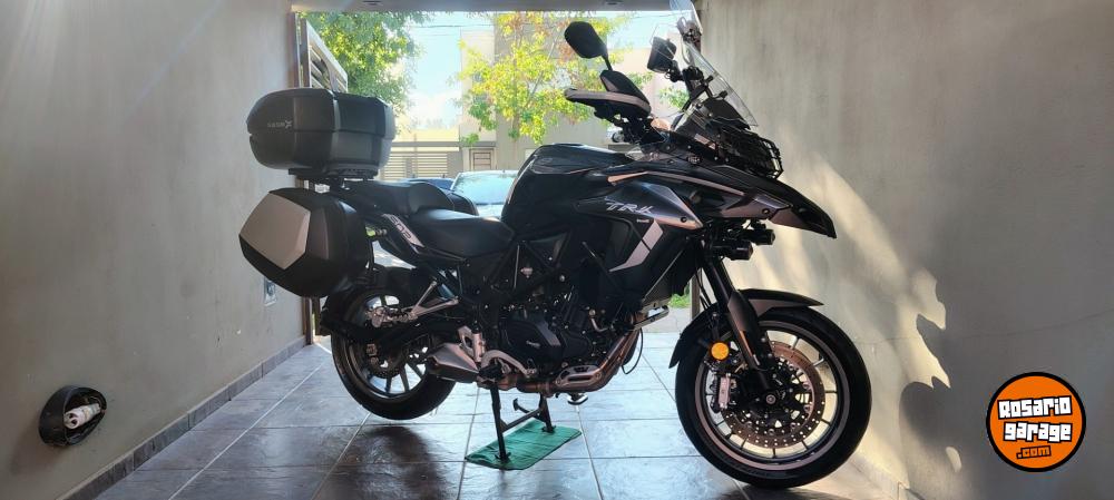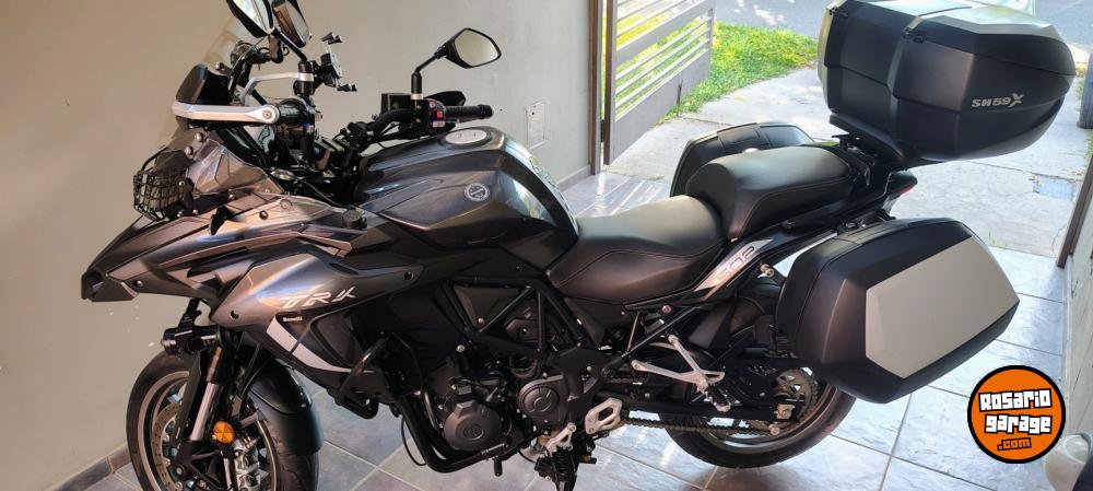 Benelli Trk 502 Asfáltica, Modelo 2021 con 25.500km // Titular al día - Patente todo el 2025 pago. // 3 Bauleras originales Shad - Services en Agencia oficial Benelli (Comprobable), Manuales y llaves, Cubierta trasera nueva, Transmisión completa Did O-ring Con piñon de 15 dientes. // Accesorios: Faros Auxiliares Hella Micro DE, Creeled en bajas y altas, Deflector PFerd, Calienta Puños, Soporte de celular con toma USB 12v, Pantalla Carplay Android, Protector de óptica delantera, Sensor de presión y temperatura de neumáticos. Pata de cabra, caballete central, tercera luz de stop SHAD. //