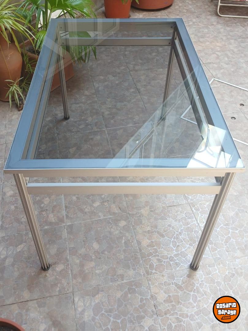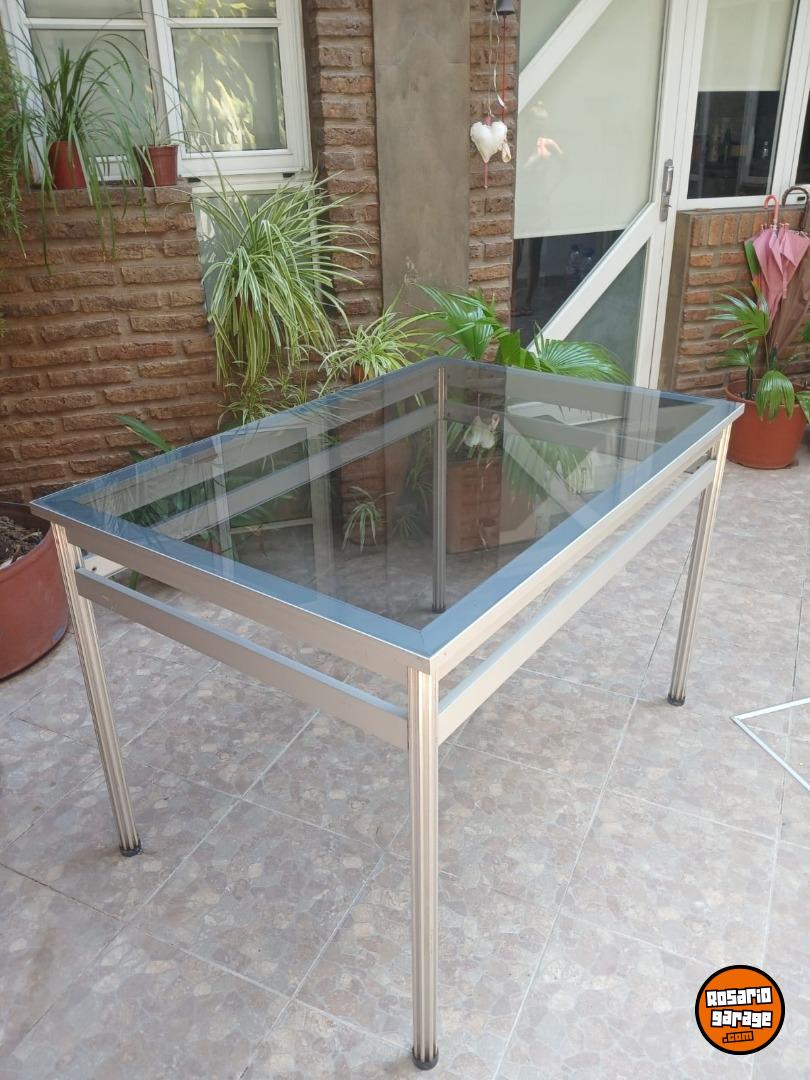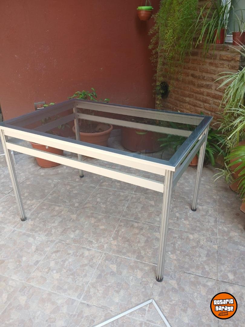 Vendo mesa de vidrio y aluminio ideal para exteriores. Perfecto estado. Medidas 0.80 x1.20 m