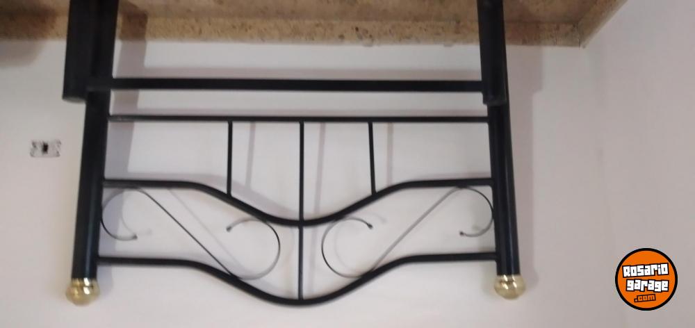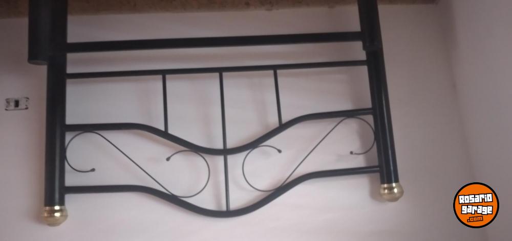 CAMA DE DOS PLAZAS DE CAÑO COLOR NEGRO CON PARRILLA DE MADERA REFORSADA CON COLCHÓN TODO EN BUENAS CONDICIONES SE VENDE JUNTO O POR SEPARADO