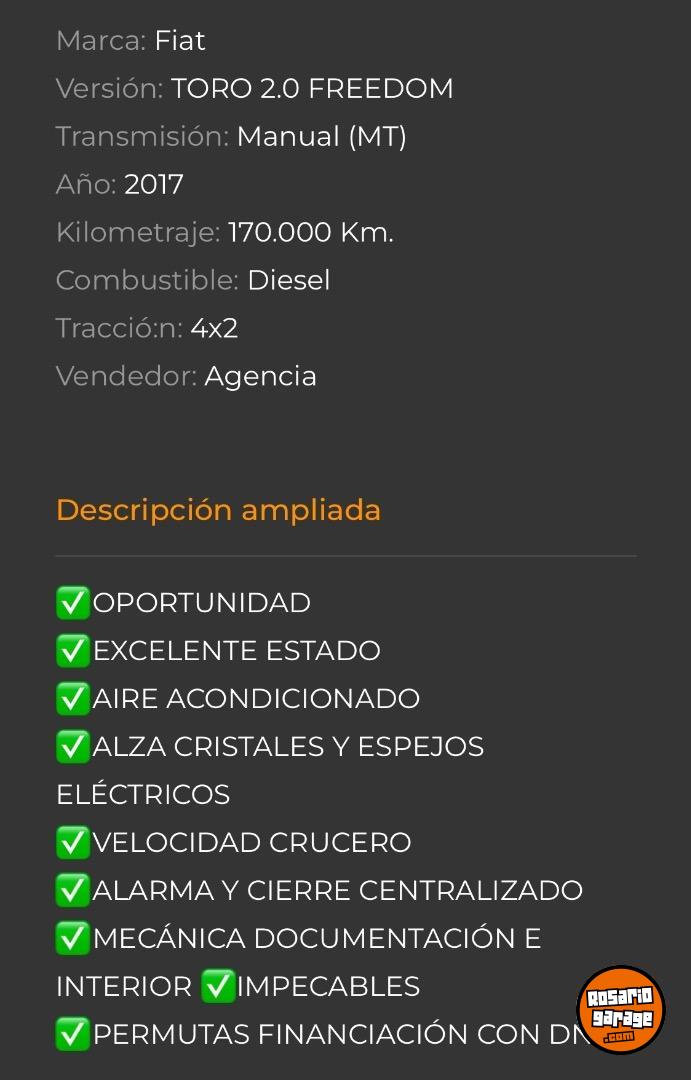 Fiat Toro 2.0 Freedom 2017 Diesel 170.041Km $19.800.000Financio Permuto