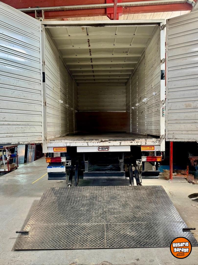Carrocería con puertas laterales y brazo hidráulico automático de 2 toneladas en la parte tracera, ideal para cargar mercadería de forma rápida, segura y sin esfuerzo.
