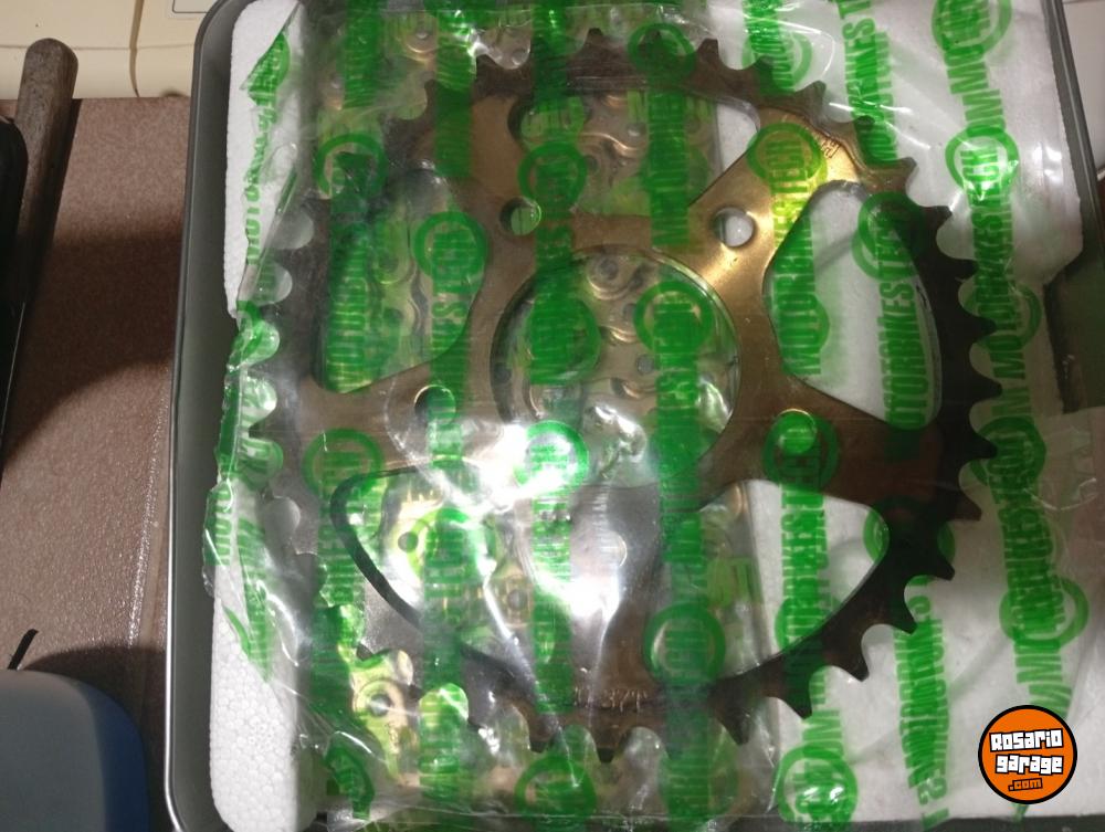 El kit es nuevo, no lo llegué a usar porque me lo mandaron mal, yo necesitaba para cb 250 y me lo mandaron para cbx 250, es nuevo, lo único que no tiene es el piñón porque fue lo único que pude usar, hablar por wsp 3416400780 quiero 65mil, en mercado libre está casi 95