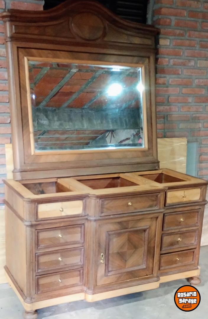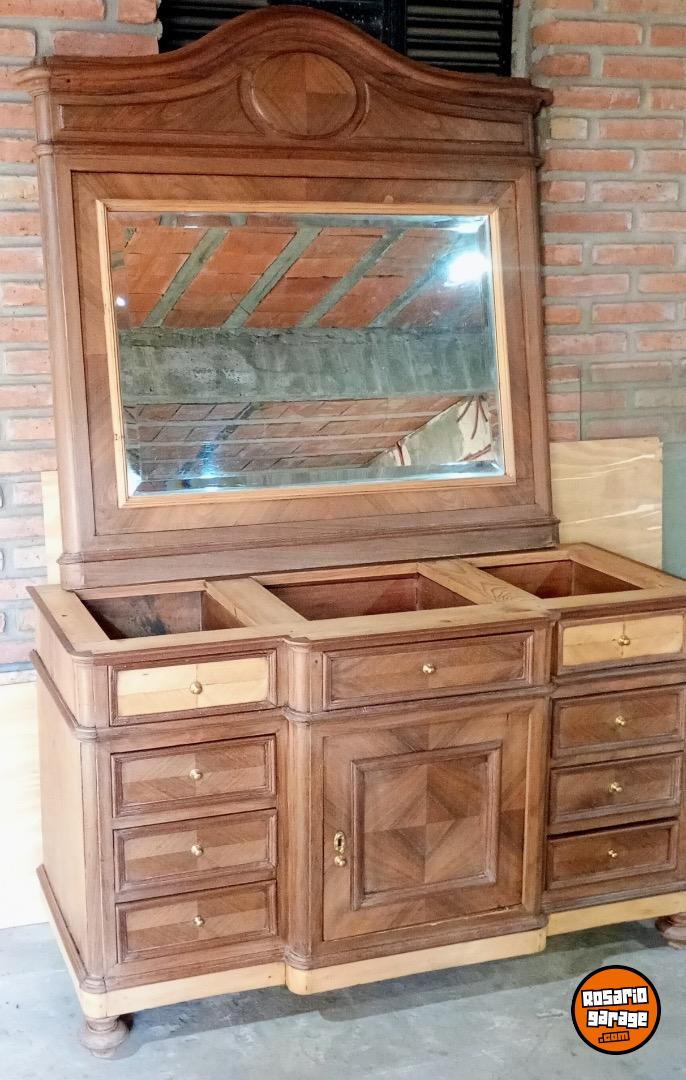Hermoso mueble antiguo con espejo lavado sin mármol