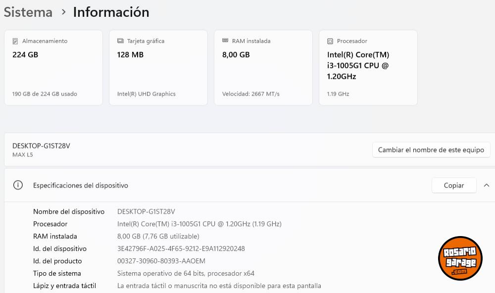 Almacenamiento: 224 GB