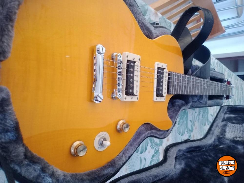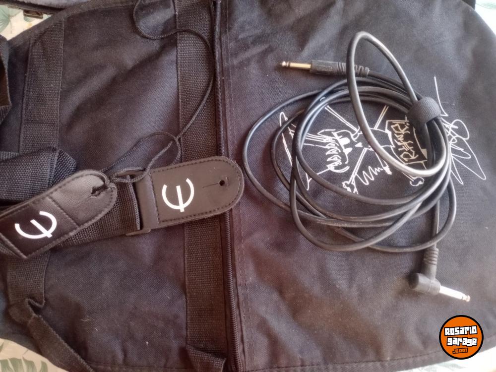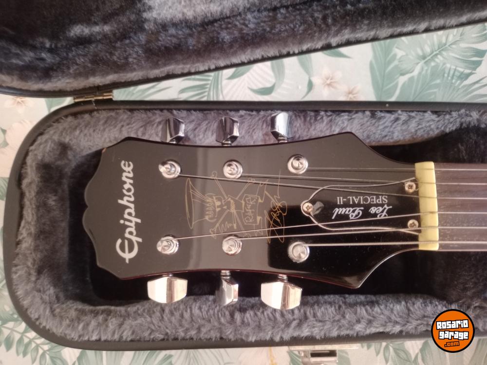 Muy poco uso. Excelente estado. Con estuche rígido Epiphone y gigbag. Correa de cuero con strap lock J Dunlop. , 3 púas tortex slash signature.