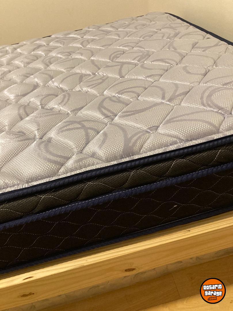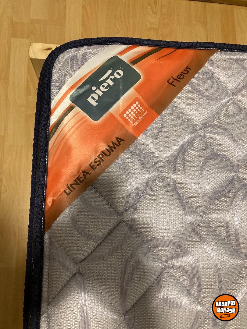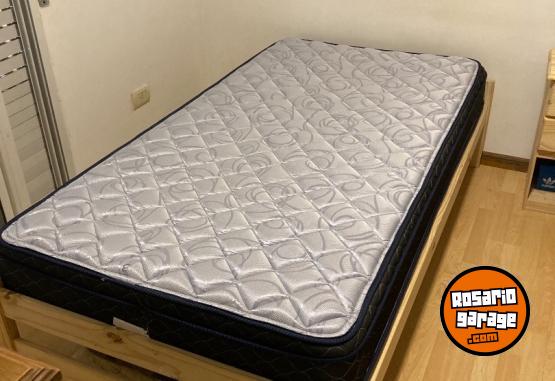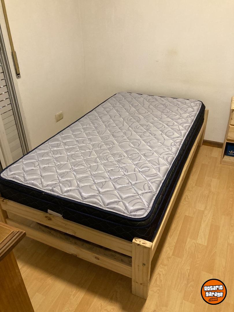 Cama de una plaza y media. 6 meses de uso. de pino y colchon de espuma.