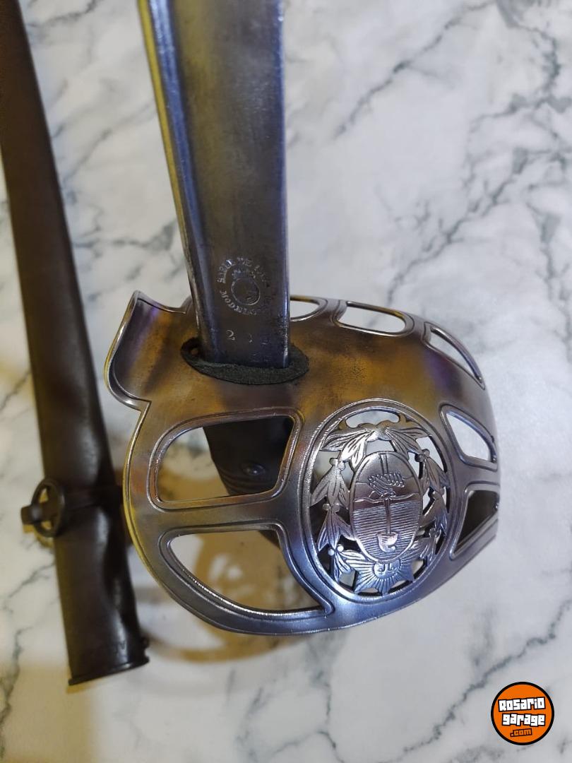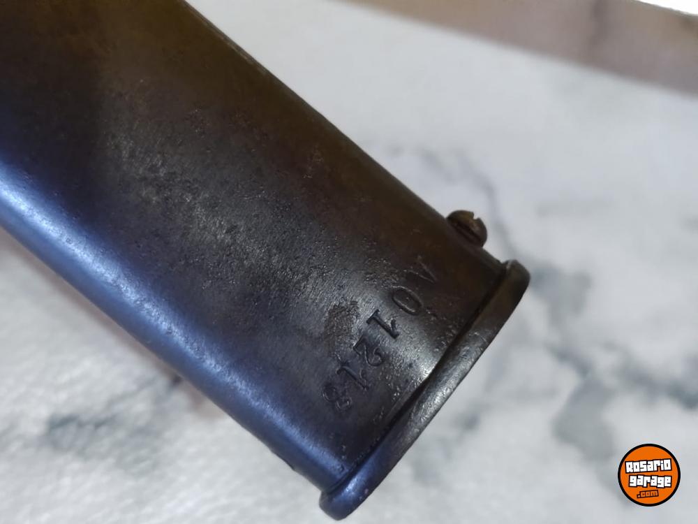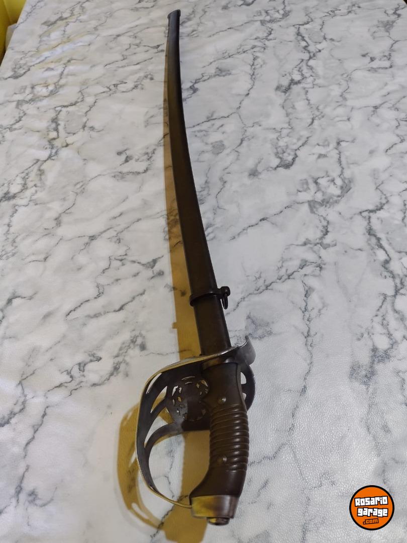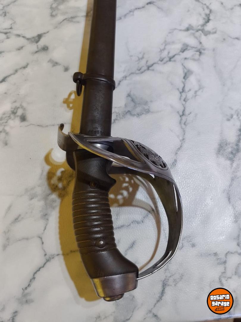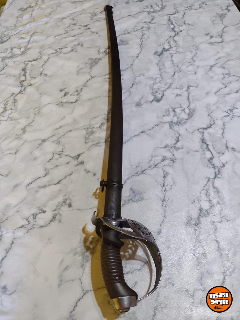 Antiguo Sable de Caballería Modelo 1898 Bajo Número en muy buen estado. No coincide su Numeración de Vaina. Número 239. De las primeras tandas ingresadas al país desde Alemania por su baja Numeración. Hoja de Acero al Carbono, grabada con sus sellos de fabricación Weyesberg Kirschbaum Co Solingen de un lado y con la leyenda Sable de Caballería Modelo 1898 del otro lado. Vaina con su empavonado original en buen estado, sin golpes. Empuñadura de Baquelita Ranurada intacta. Cazoleta de Acero, grabado con la figura del Escudo Nacional en bajo relieve.