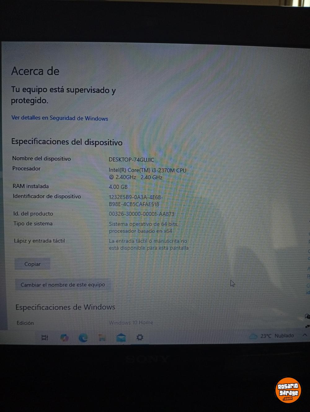 Detalles: La notebook funciona enchufada únicamente. Le faltan las teclas flecha de abajo y } pero igualmente funcionan.