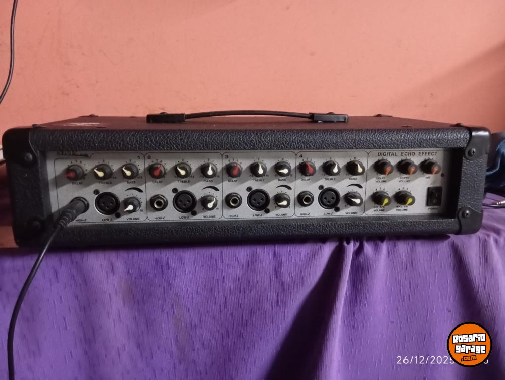 Es de 4 canales + 2 parlantes de 100w , también tengo el cable para micrófono (sin el micrófono) se puede ver sin problemas