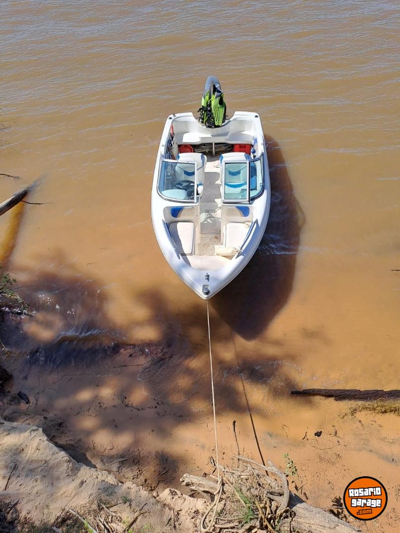 La lancha esta equipada , chalecos elementos de seguridad powertrind eco sonda arranque eléctrico
