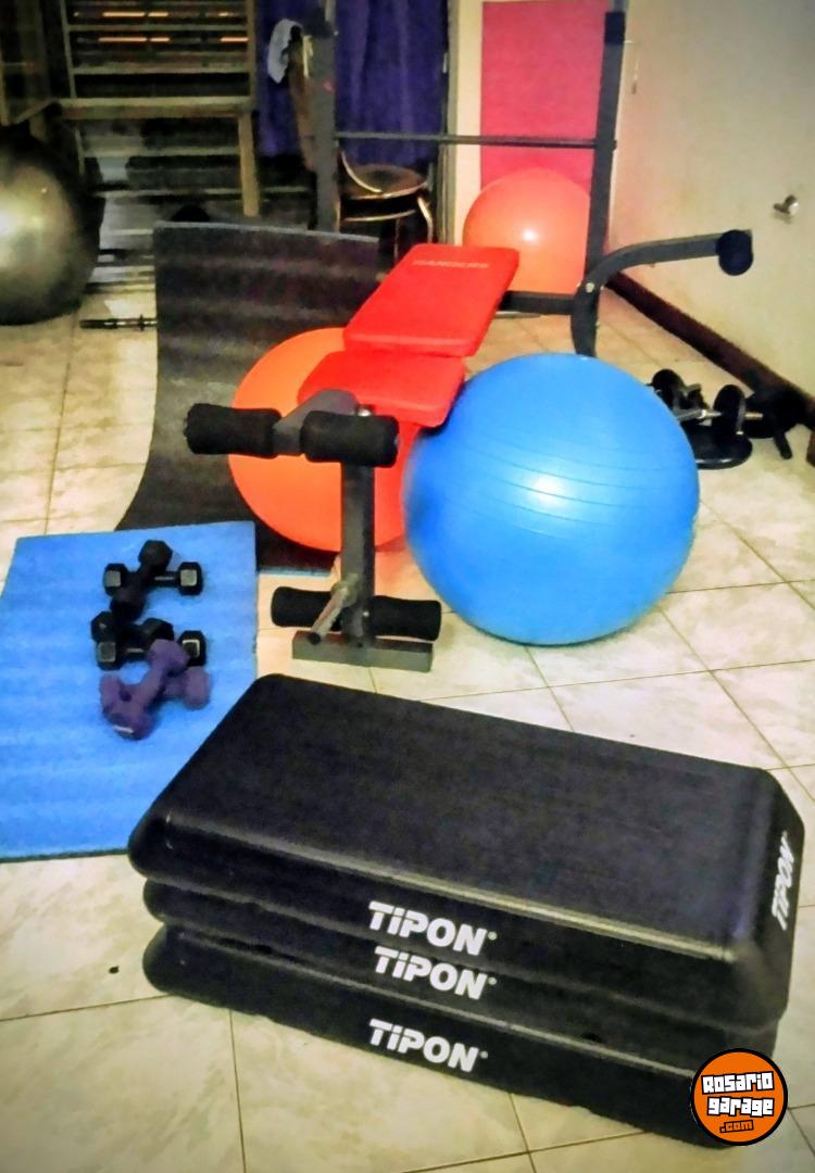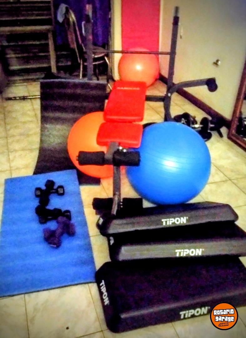 2 colchonetas,3 juegos de mancuernas, 3 step ,2 pelotas de pilates