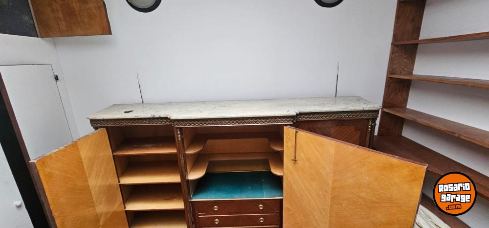 Hermoso mueble de madera de raíz original de nogal, con tapa de mármol y herrajes en bronce, medidas: 2,06 de ancho x 1,56 de alto x 0,50 de profundidad.