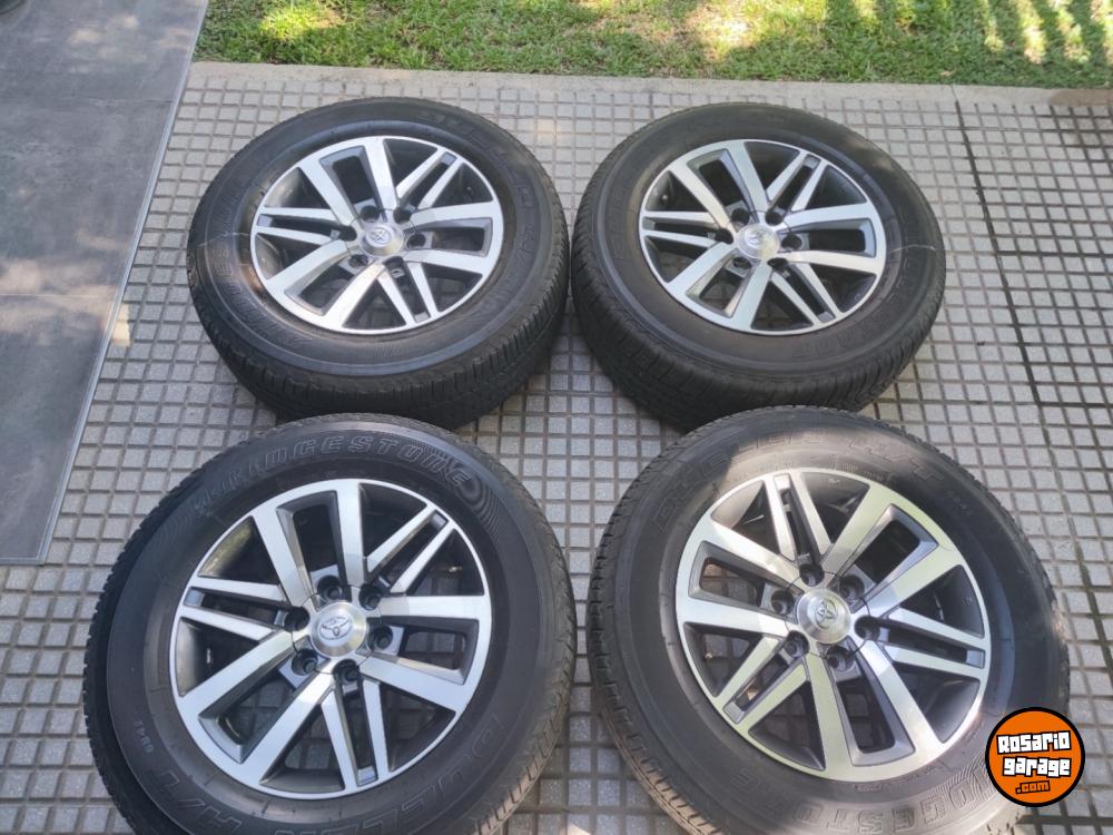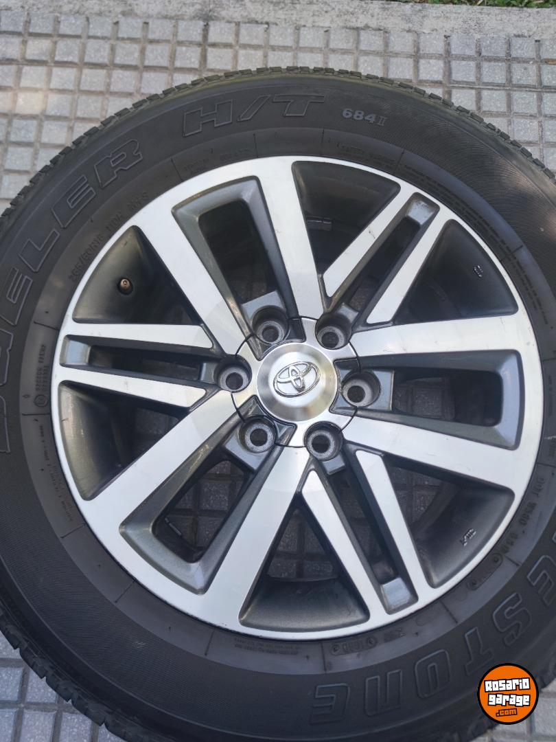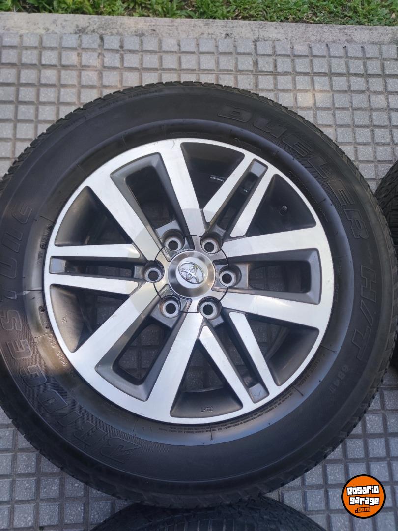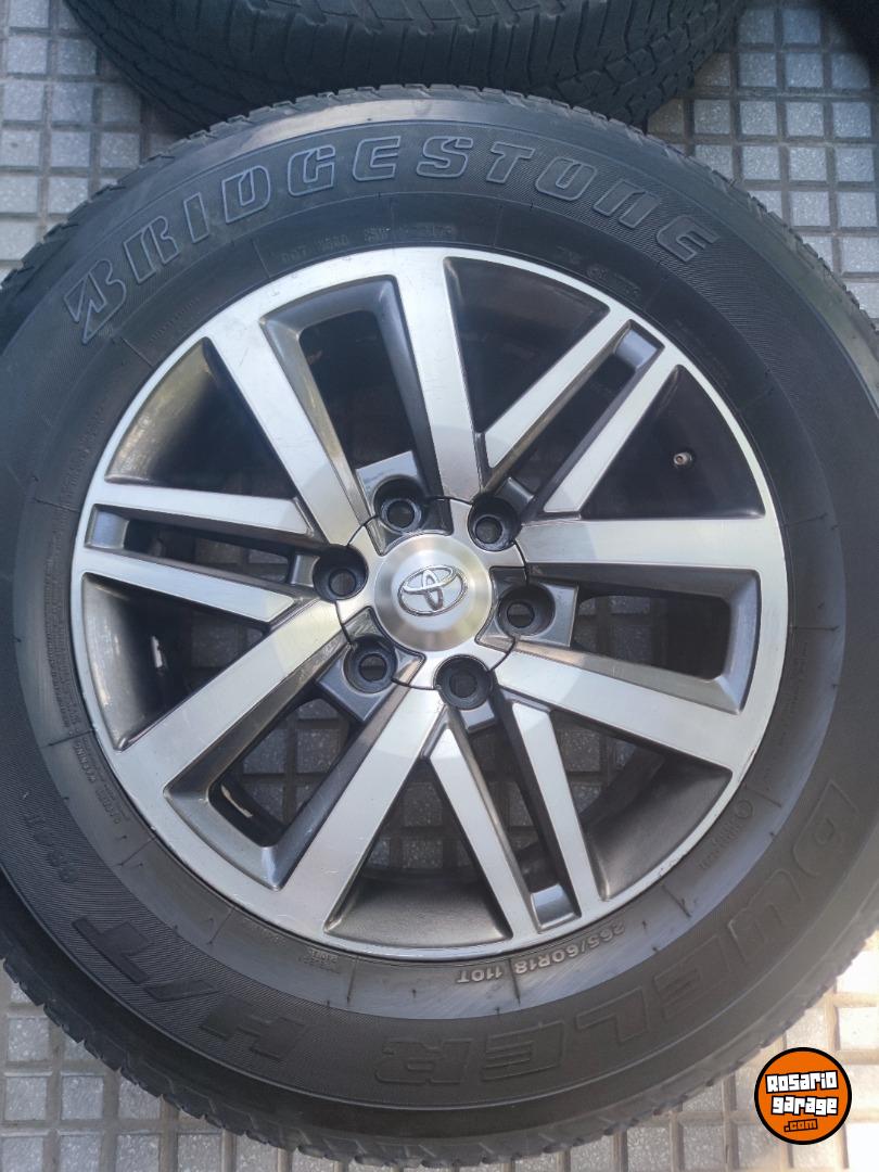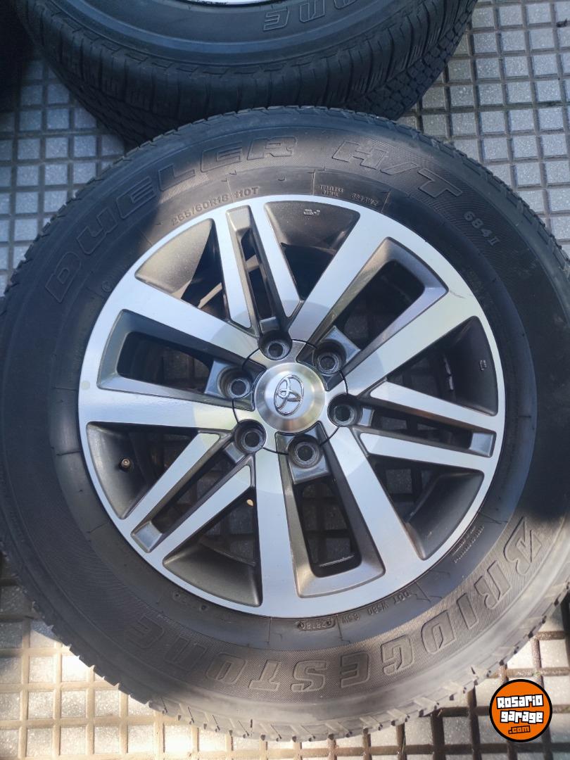 Juego de Ruedas usadas. Llantas 18" Originales de Toyota Hilux y SW4 Srx en muy buen estado con sus tapitas y cubiertas 265 60 18 Bridgestone Dueler H/T con más de medio dibujo (las 4 iguales parejitas). SE VENDE TODO ARMADO $1.950.000. NO BAJO PRECIO. Podría tomar en parte de pago algunas llantas de mí interés. Consultar al 3413312452. Soy de Rosario - santa fe tal como indica la publicación.