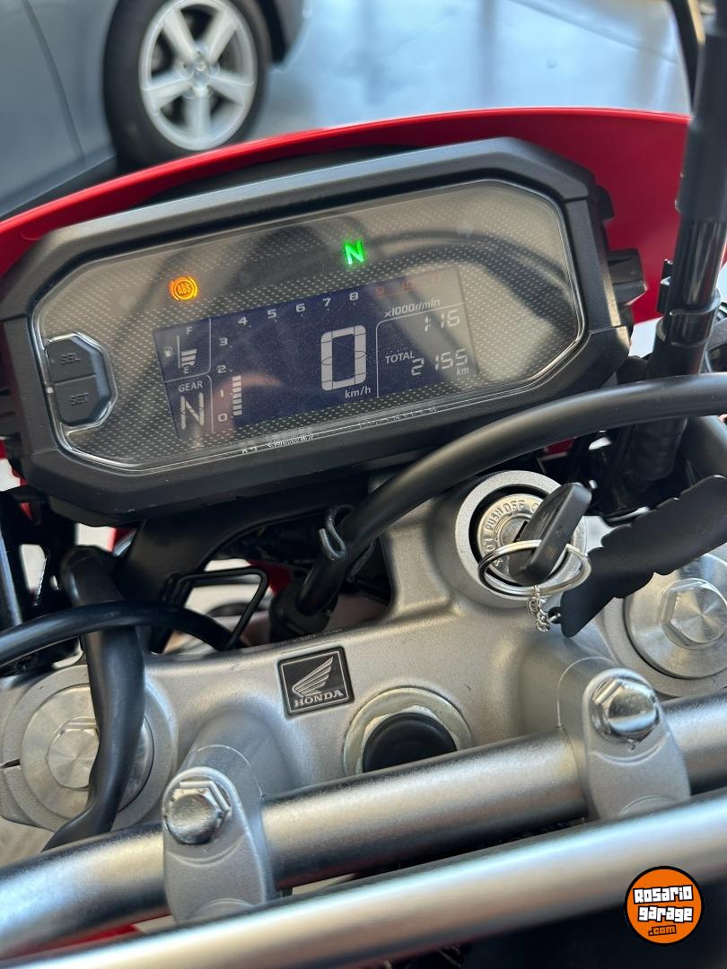 MEJORIAS EN ESTE MODELO, EMBRAGUE CON ANTI REBOTE, TENSOR DE CADENA. SUSPENSION SHOWA EN HORQUILLA Y MONO AMORTIGUADOR TRASERO PRO-LINK AJUSTABLE EN 7 POSICIONES. TANQUE DE 13.8LT.
