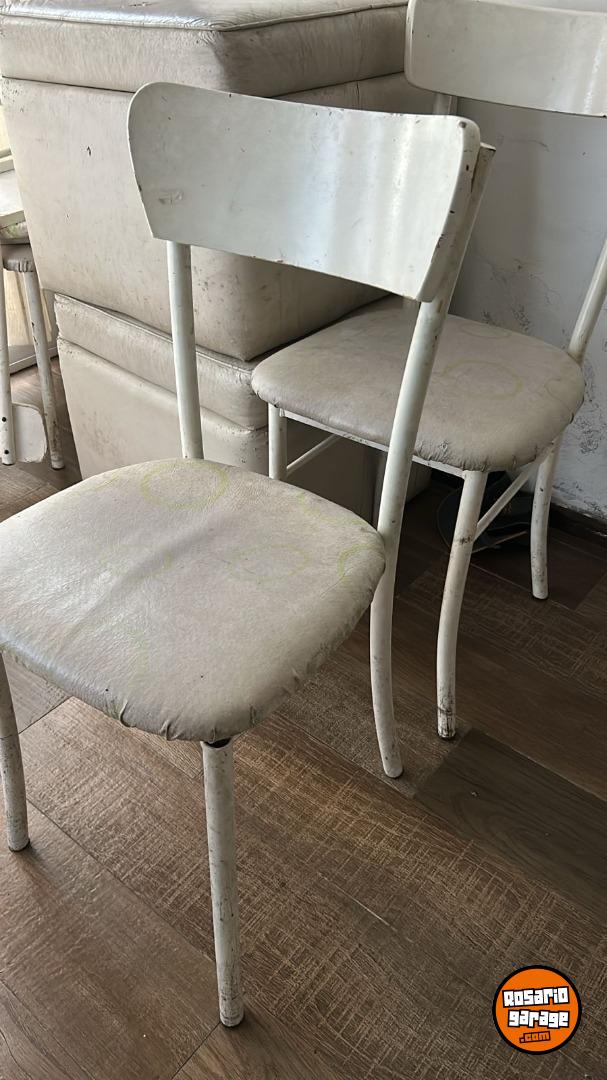 son 4 sillas de caño, color blanco y tapizado cuerina + 4 Puf hermosos de cuerina blanca de 50x50x45 usados , con estructura perfecta