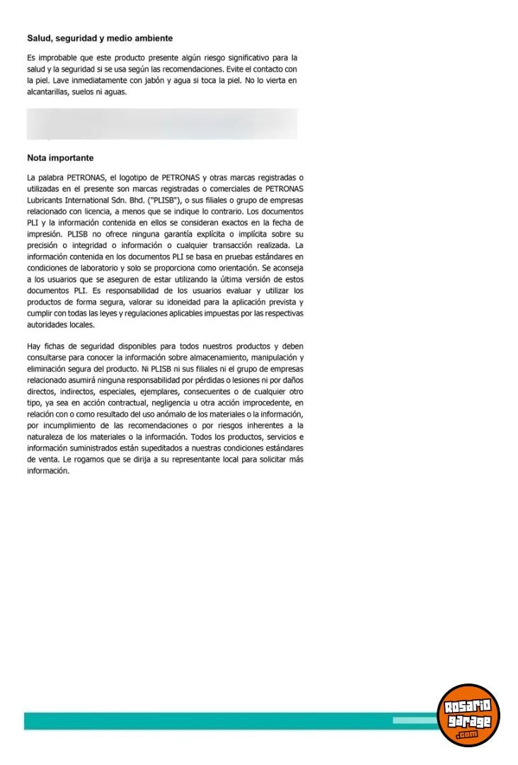 * Elevada estabilidad quimica y compatibilidad con gomas y guarniciones.