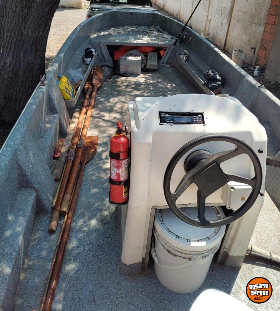 Completa; matafuego, remos, stereo, palabichero, bengala, salvavidas.