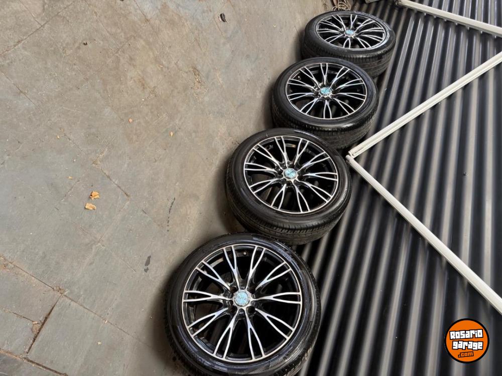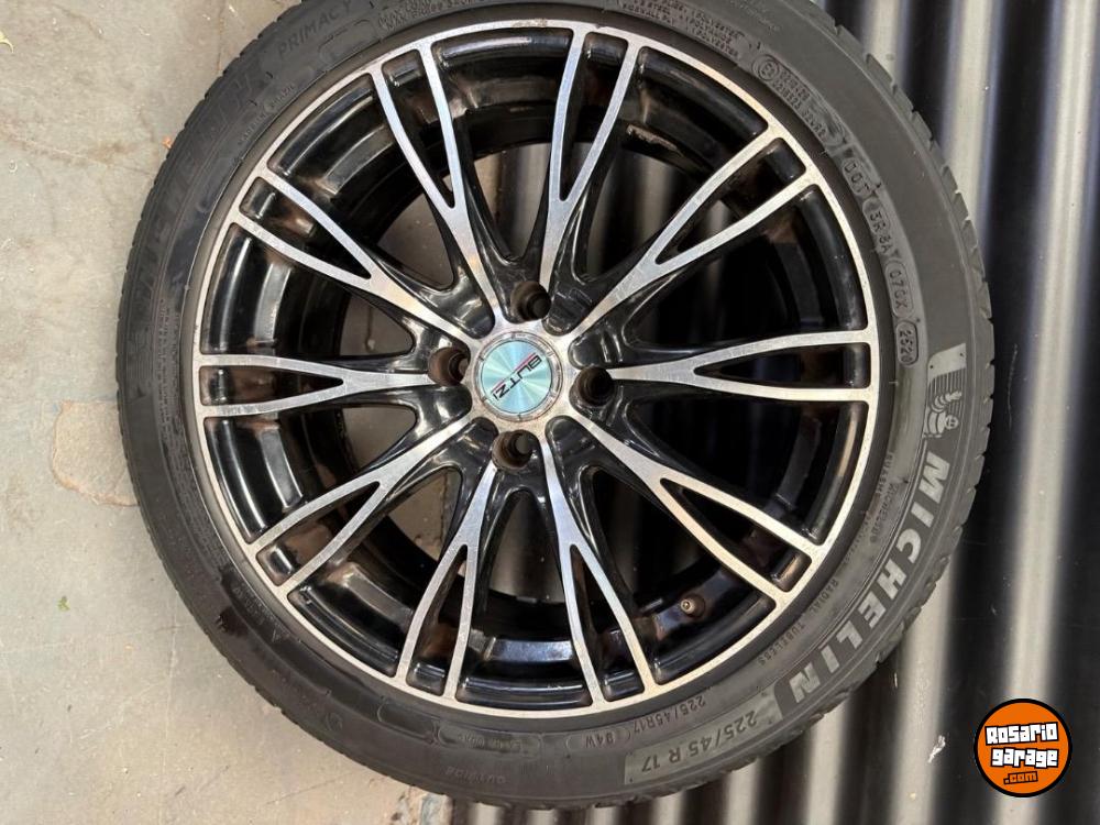 Vendo 4 llantas 17 dos con cubiertas Yokohama casi nuevas 225/45/17 y las otras dos cubiertas michelin más de medio uso distribución 4 en 108 y 4 en 100