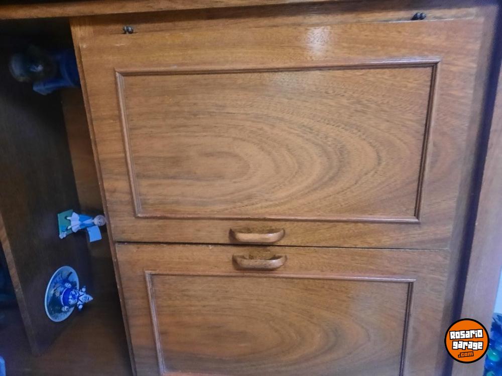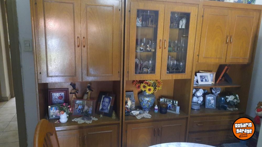 Modular de madera, tres cuerpos , 1,74 por 0,74 cm cada parte, con estantes, puertas , cajones y parte vidriada