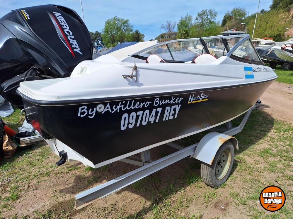 TITULAR. Bunker 5100 con motor Mercury 50hp 4T con 25 horas de uso. Todo Año 2022 en perfecto estado y service realizado en enero 2026. Bomba de achique.El precio es el publicado con su trairler correspondiente.. El equipo se encuentra en guardería y se puede probar si es necesario.