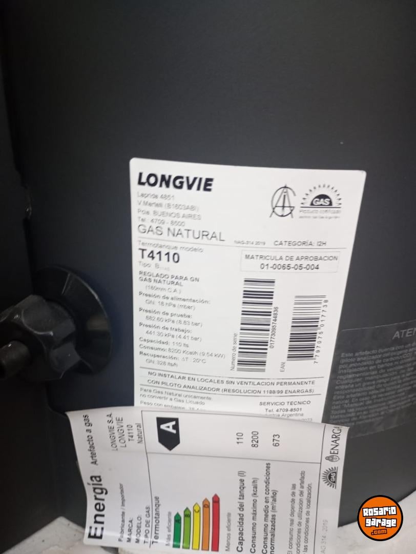 Termotanque a gas Longvie 110 litros, nuevo sin uso.$340.000.-TEL: 3415607978