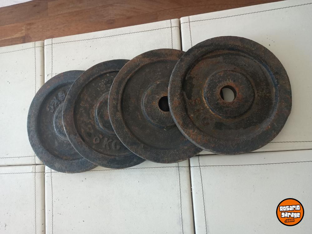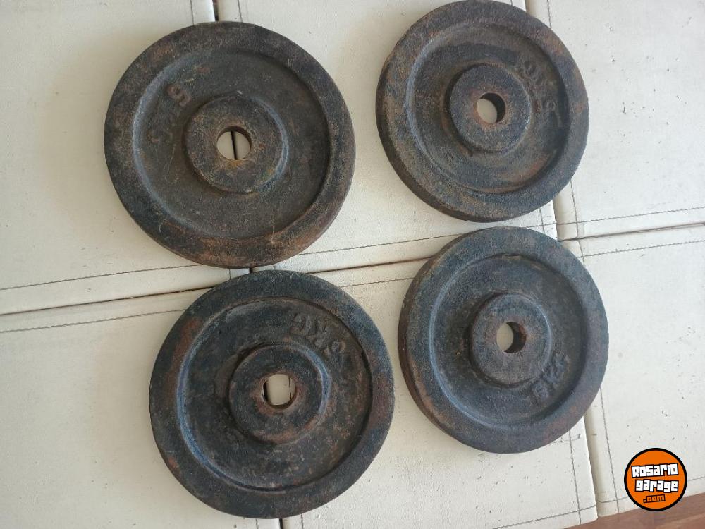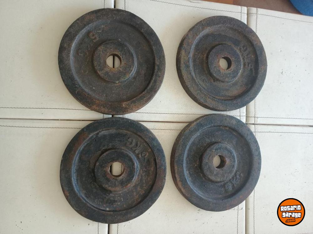 Cuatro discos de fundición de primera calidad de 5 kg. El precio es por kilo, osea un disco de 5 kg $15.000, el par $30.000 y el juego de los cuatro a $60.000. Zona Arroyito o Pichincha. Podría llevar según la zona