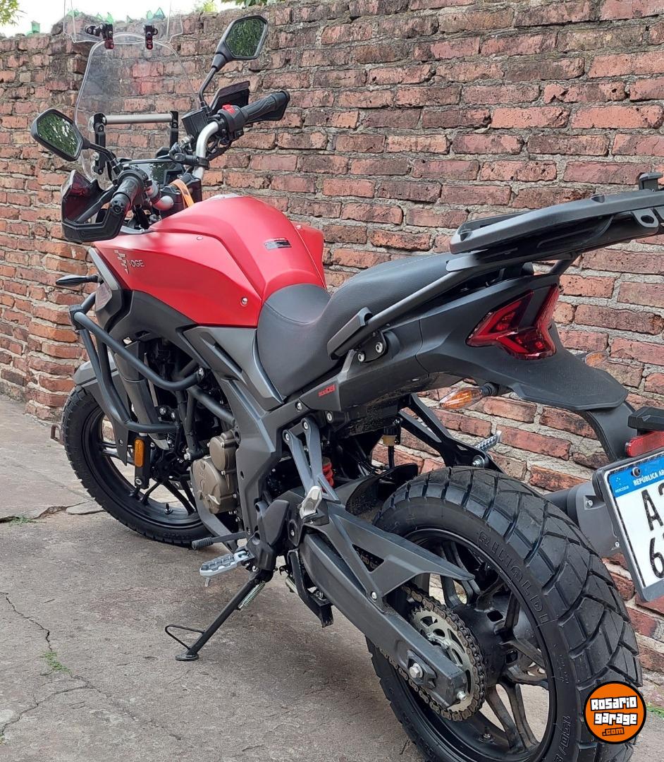 Se le agregaron, defensas, cubre puños, caballete central, deflector en el parabrisas, barral para soporte de celular, ampliador de pié y elevador de manillar. Se cambiaron las cubiertas originales (asfálticas) por cubiertas doble propósito. Todo los papeles al dia, soy titular.