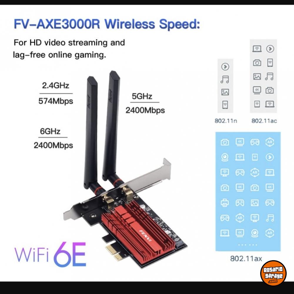 La tarjeta PCI-E Wifi 6E 802.11AX/AC Tri-banda modelo AXE3000Pro de la marca Fenvi es la solución ideal para quienes buscan una conexión a internet rápida y estable. Con tecnología WiFi 6E, ofrece velocidades de hasta 3000 Mbps, permitiendo disfrutar de streaming, juegos en línea y videoconferencias sin interrupciones.