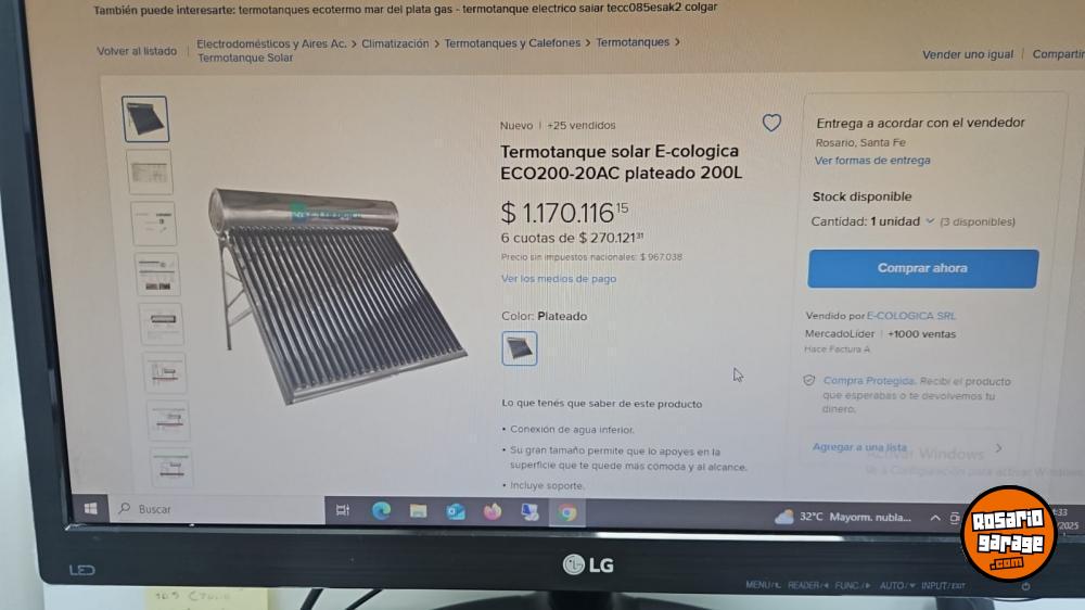 vendo termotanque solar e-cologica nuevo sin uso 200L