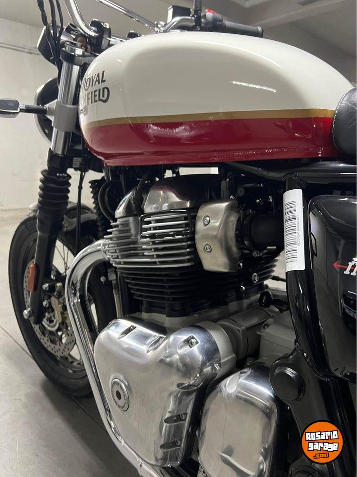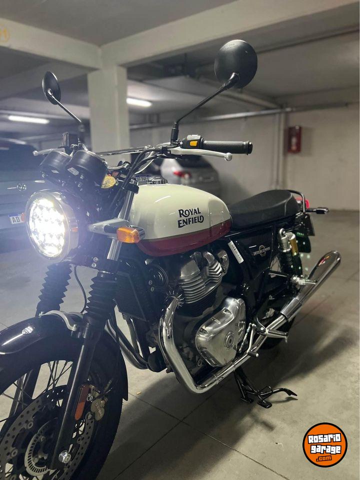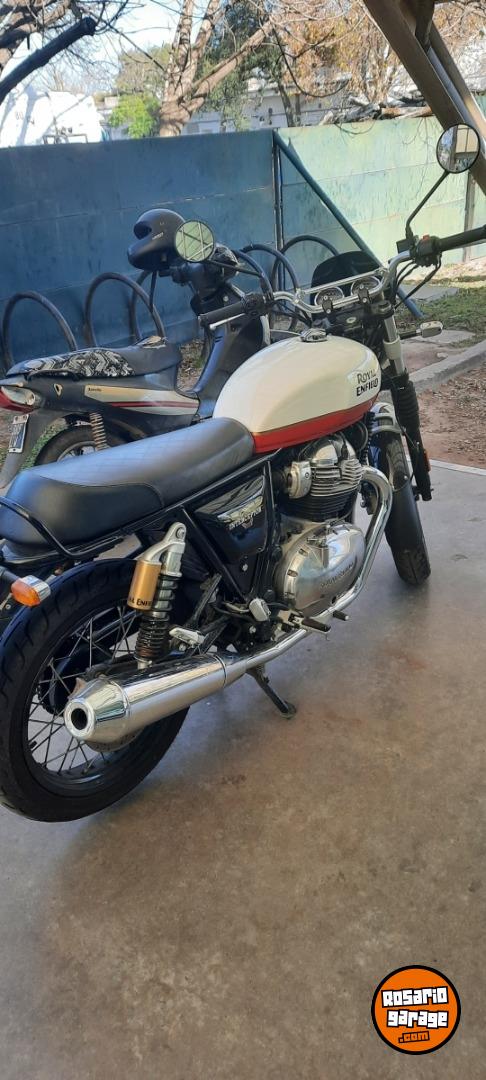 Vendo Royal Enfield 650 Interceptor año 2022, 10460 km, duplicado de llave, manual, herramientas, service oficiales, elevadores de manubrio para una mejor postura, luz de led y parabrisas bajo, se entrega también parabrisas alto, juego de escapes deportivos cromados y cubierta delantera original 0km. Soy titular, esta todo al día lista para transferir. Tiene casi 700000 pesos en accesorios que los entrego con la moto. Funciona todo a la perfeccion, no hay que hacerle nada. 3413823225. ANDRES.