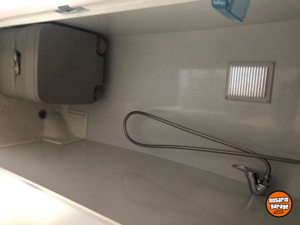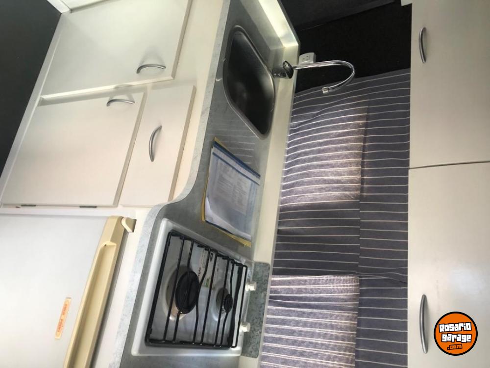 Calefon, caldera a gasoil , inodoro químico , ducha agua caliente y fría , anafe, toma para 220 , heladera, toldo exterior, lista para viajar