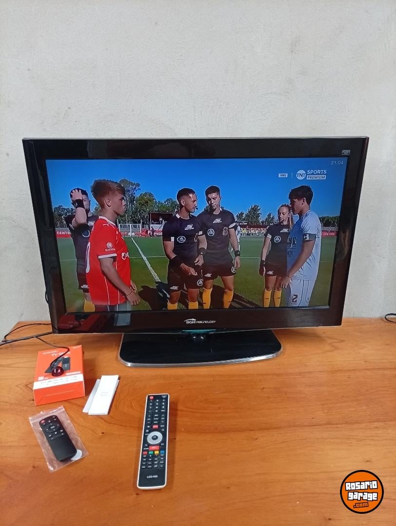 Es un televisor de 32 pulgadas marca BGH FEELNOLOGY con su control remoto.