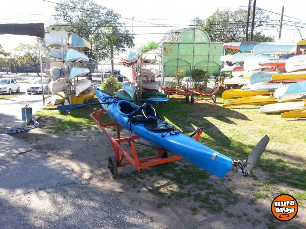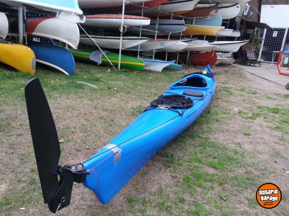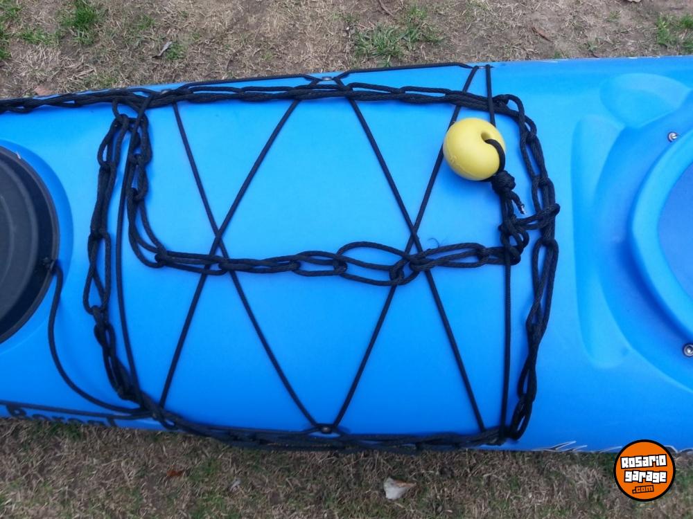 Kayak de plástico ideal para travesías largas extremadamente estable y con gran capacidad de guardado. El kayak fue personalizado por ser un fanatico de la aventura cuenta con los siguientes elementos: