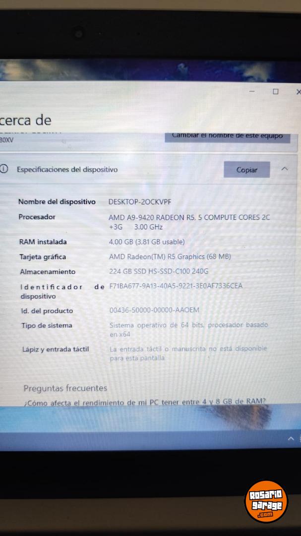 AMD A9 9420 Radeon R5 - 4GB DDR4 - SSD 240GB - DVD