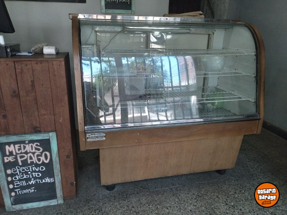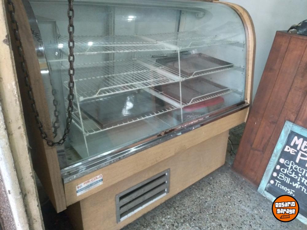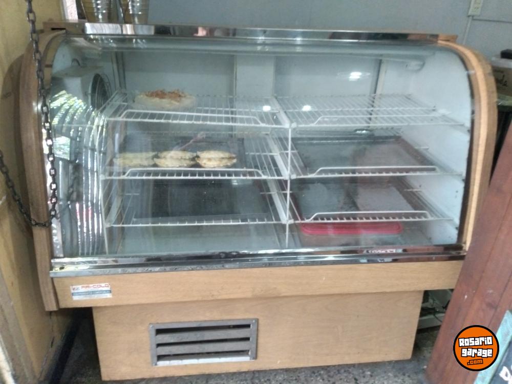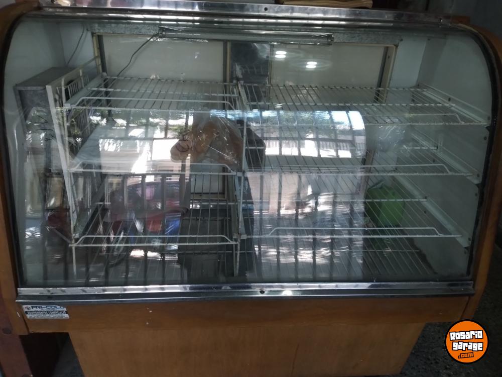 Heladera exhibidora vidrio curvo, rejillas metal, interior acero inox. Madera clara. Se puede ver en rosario zona centro