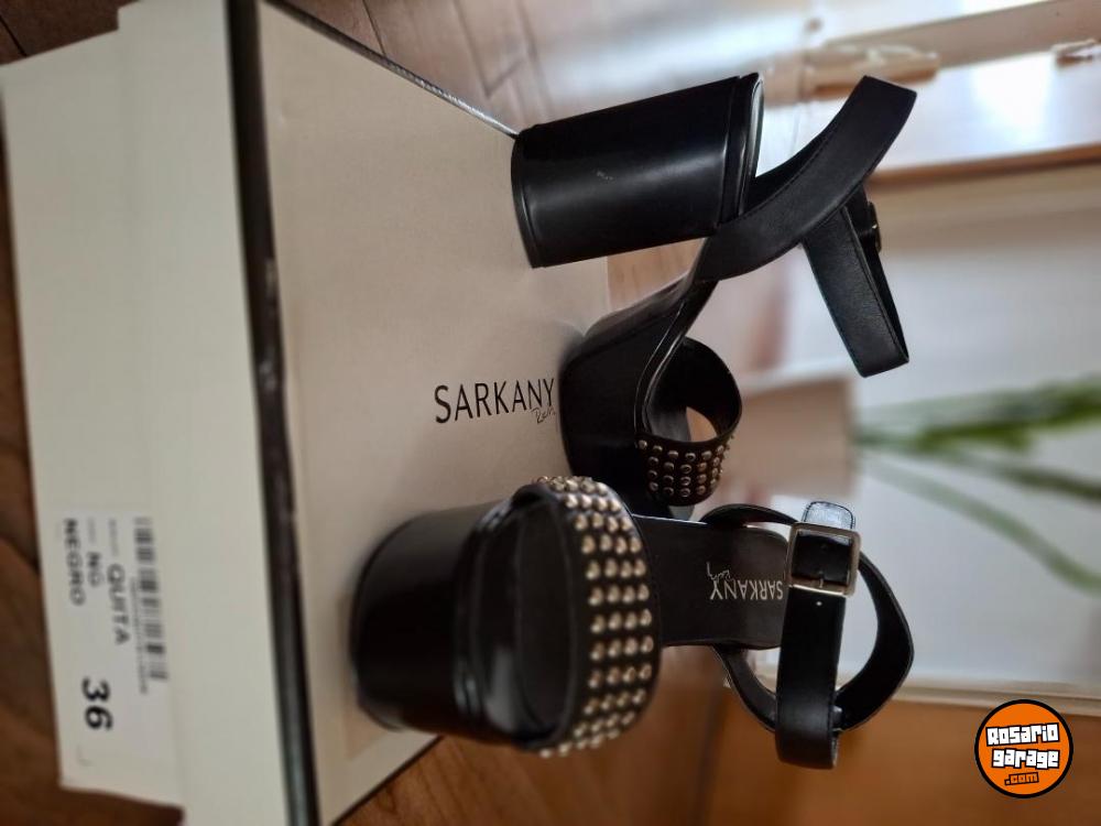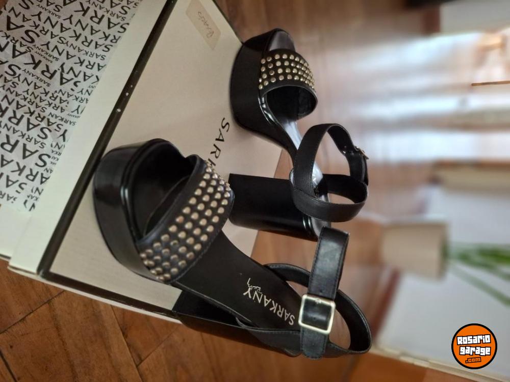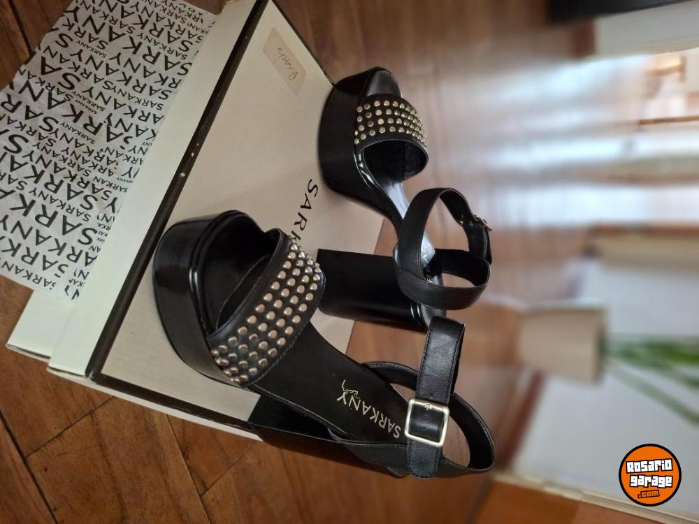 Sandalias Sarkany Negras Plataforma Con Tachas Taco Alto. Talle 36 Mujer.