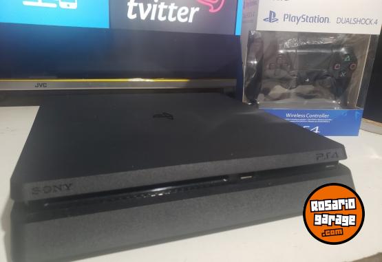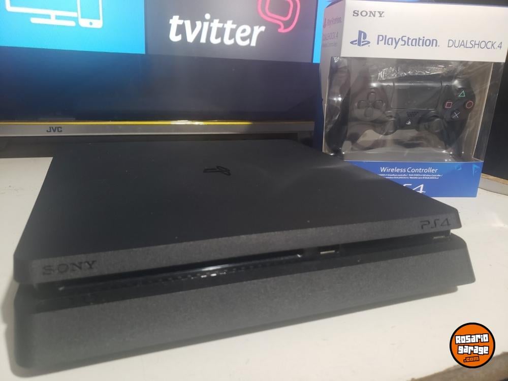 PS4 Slim en versión 12.50 con Exploit tiene 27 juegos instalados. su disco es de 1TB de espacio. (En esta consola se pueden instalar todos los juegos gratis que existen para Ps4 se descargan desde una PC y hay que pasarlo a la consola por USB)