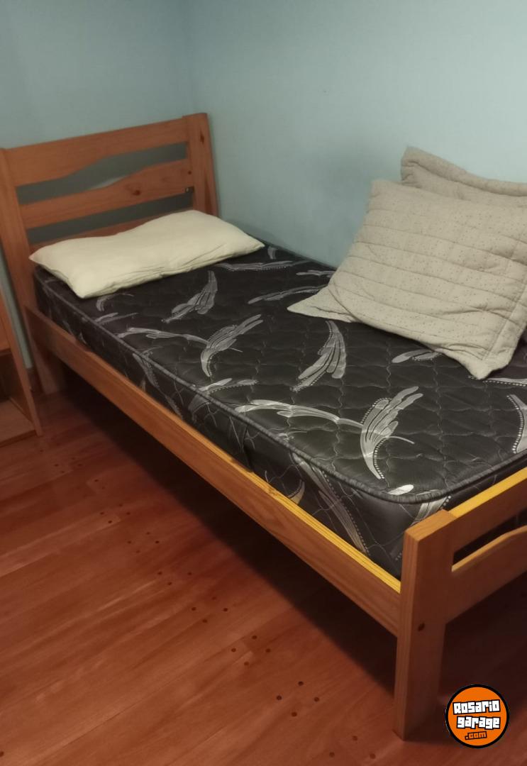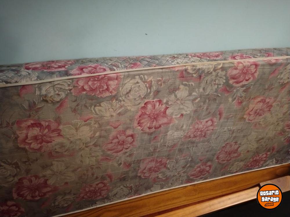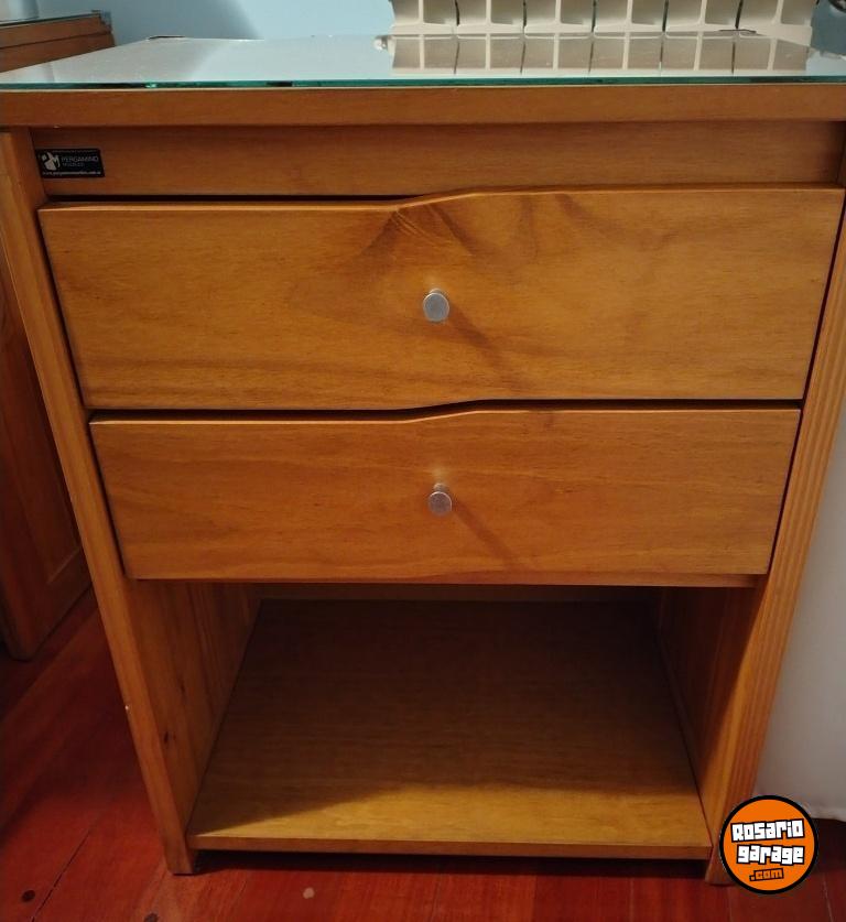 Se encuentra en muy buen estado, solo tiene roto el vidrio de la mesa de luz. Incluye cama, mesa de luz, cómoda y el colchón con flores rojas y blancas.