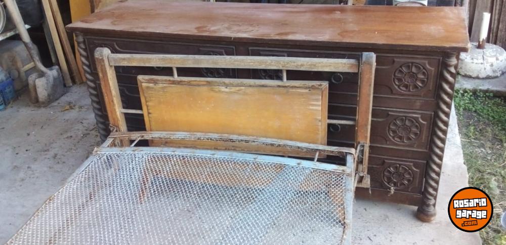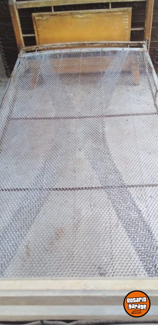 Cama individual de hierro y madera