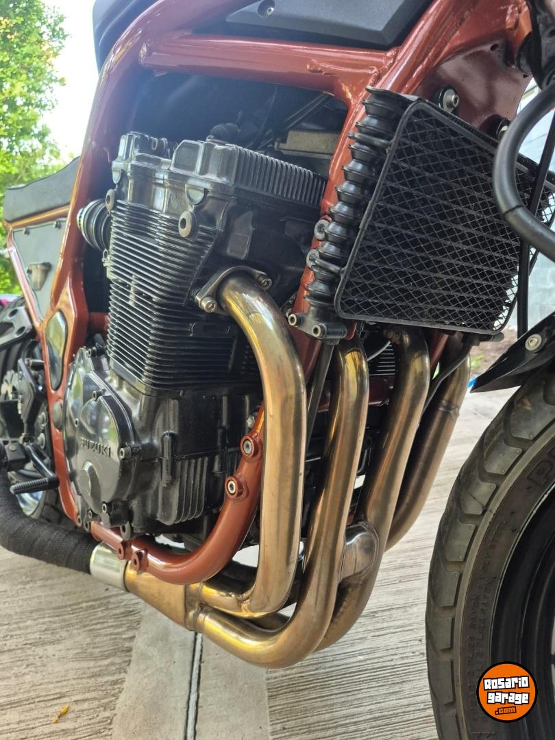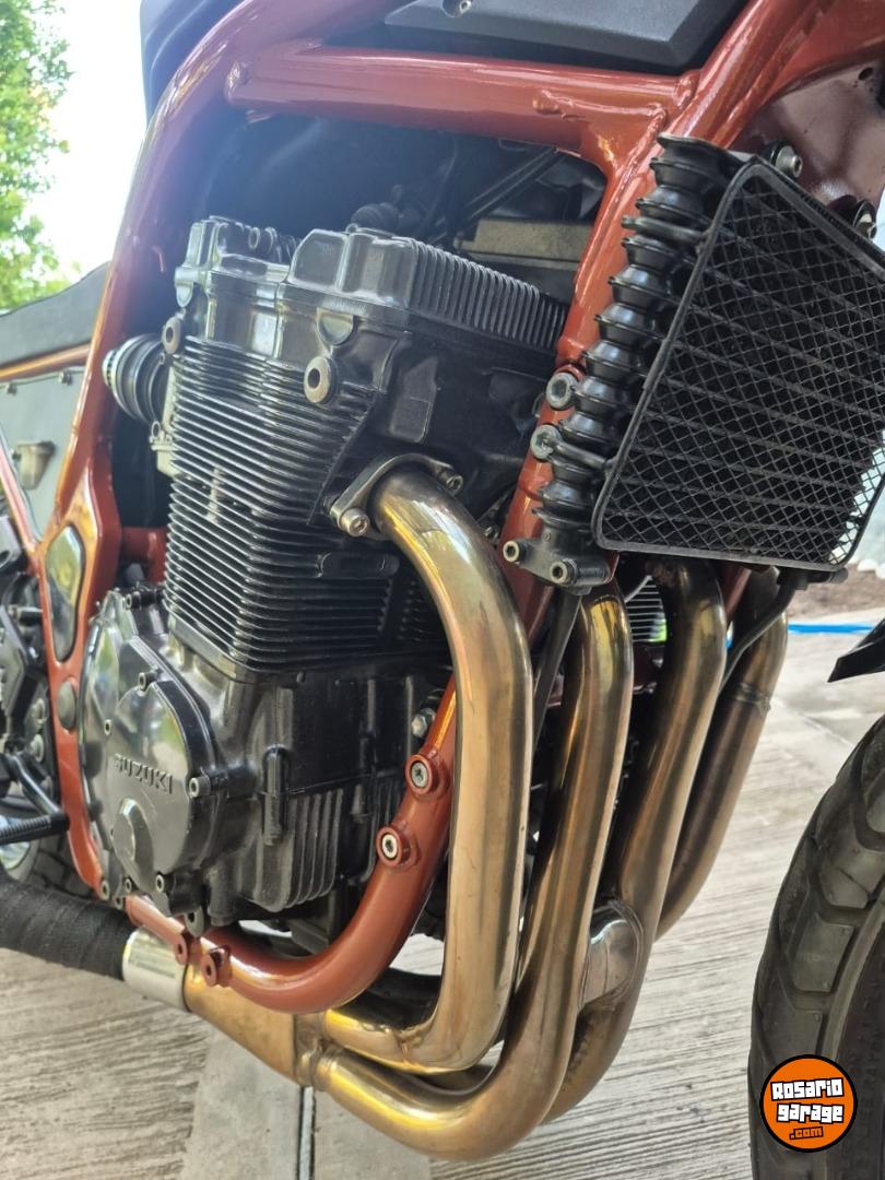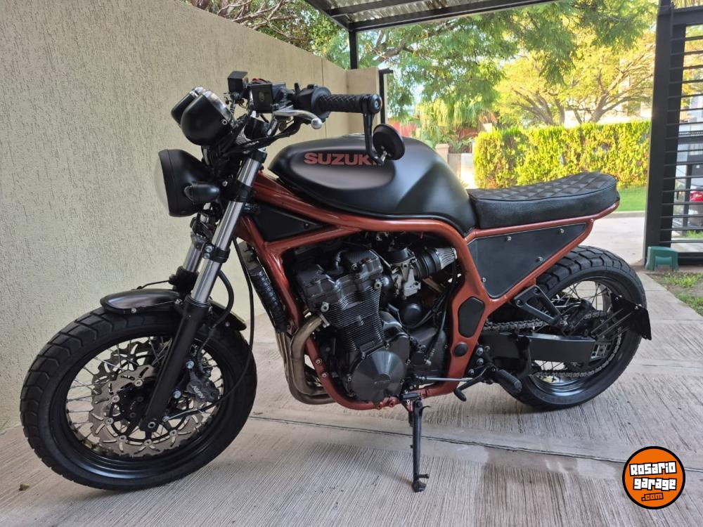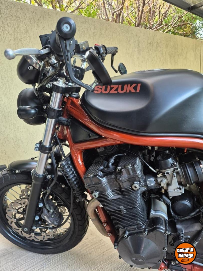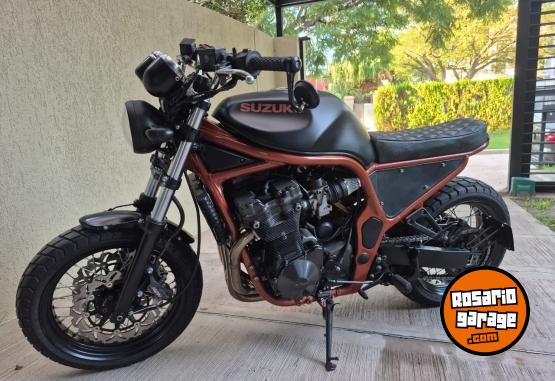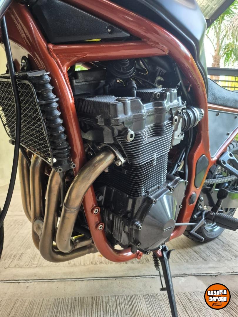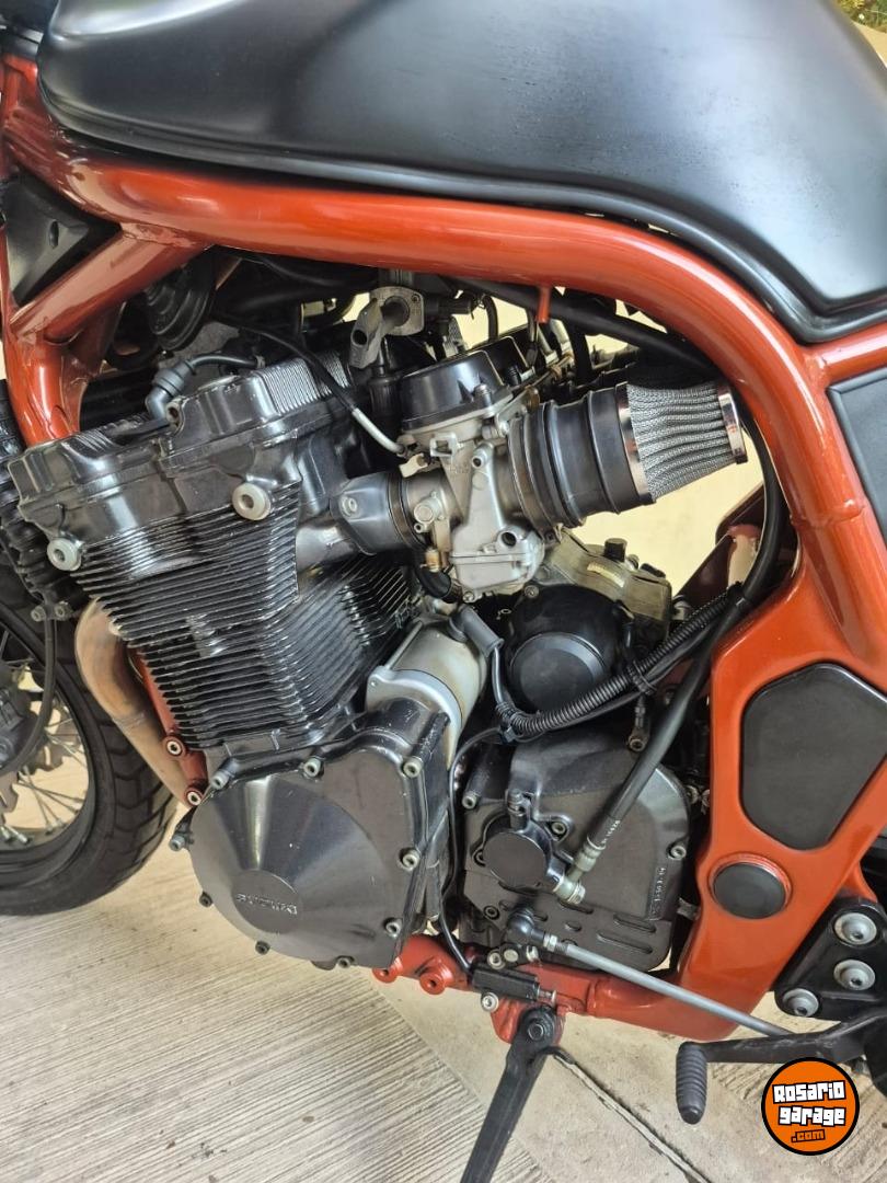 Suzuki Bandit 1200cc año 1997, ingresaron muy pocas al país y esta moto es única. Fue modificada por el taller especializado Retro Team en Rosario, un trabajo que llevó mas de 4 años. La moto tiene la mecánica original, sin ningun tipo de modificación, solo se cambiaron los filtros de aire porque al modificar el cuadro no entraba la filtrera original y se cambió el escape por un Akrapovic. También se reemplazaron las llantas, discos de frenos y cubiertas. El manubrio, el tanque y los rejoles junto con la suspención y el motor son originales de la moto. Tiene un andar y un sonido único, de los que ya no existen. Es una moto japonesa 100% con un motor 1200cm3 con 4 carburadores que acelera, frena y dobla que es una belleza. La vendo porque estoy en una etapa de mi vida que no la disfruto. Solo la van a valorar quienes entiendan lo que es esta moto y el trabajo que tiene hecho, es minucioso, artesanal y único. Tiene hecho y reemplazado, con servicios y mantenimiento hechos al día todo lo que es frenos, motor, suspesión. Es usarla, mirarla y disfrutarla. No me interesa ningún tipo de canje de nada. La vendo transferida sin excepción. Los KM expresados son en millas.