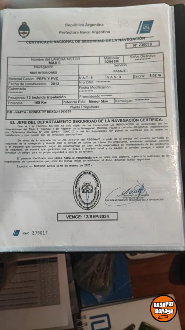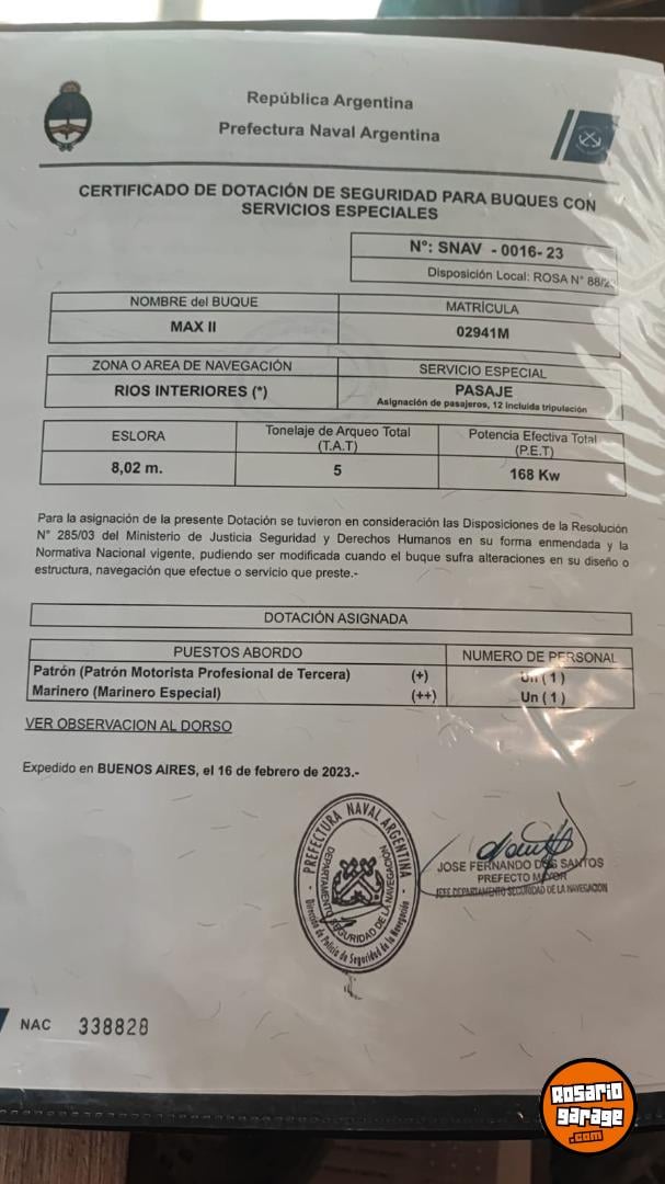 GOMÓN DE PASAJERO HABLITIDADO CON TODOS LOS PERMISOS DE PREFECTURA.